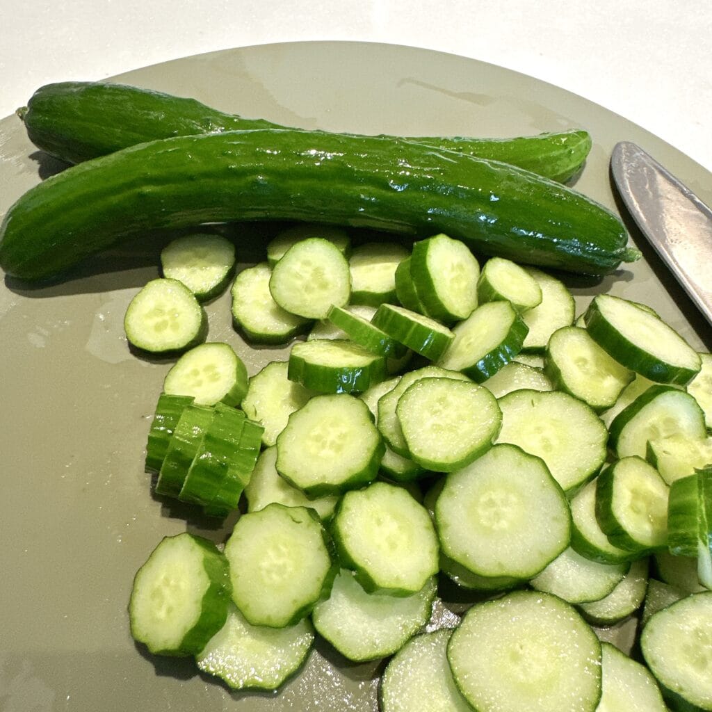 きゅうりを5㎜幅にトントン切っていき、