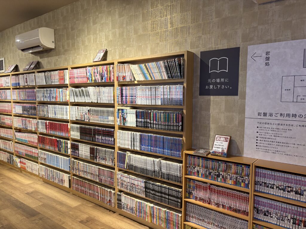 リラックススペースに漫画が置いてある銭湯は多いですが、ここはなんと岩盤浴をしながら漫画を読めるんです!