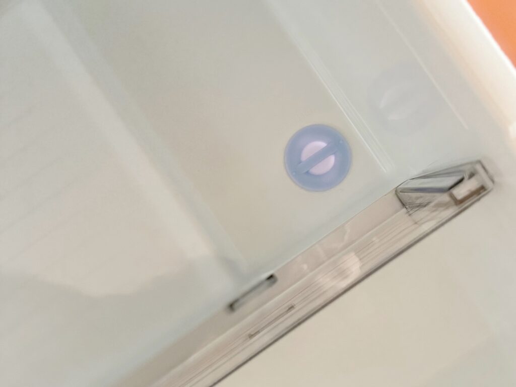 端っこにおそうじ口があるから、ここをパカっと開けてゴミ処理が楽々に。今の冷蔵庫って嬉しいポイントがたくさんなんですね。