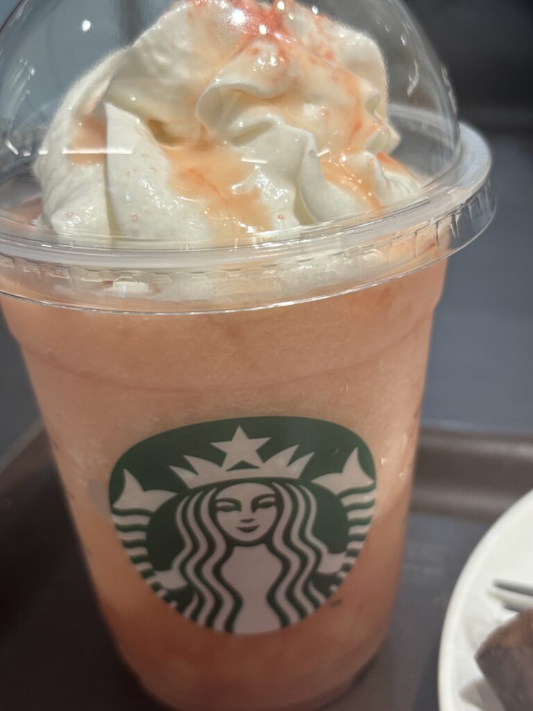 スタバの新作、ヘブンリーピーチフラペチーノをいただきました!