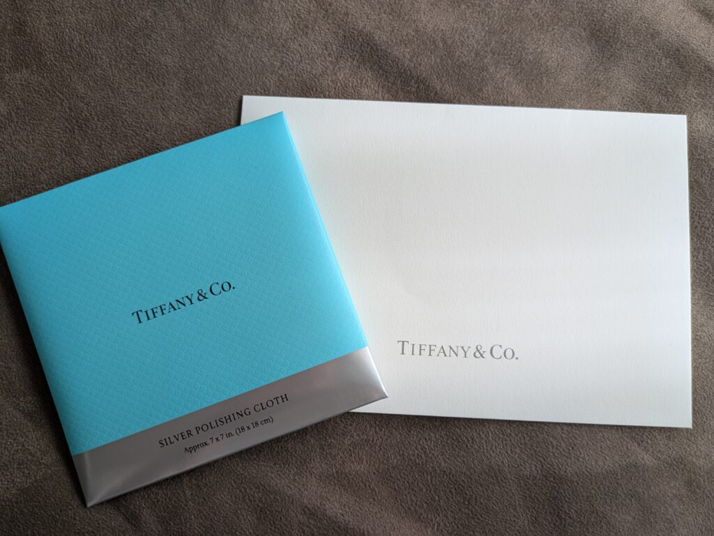 ネックレスだけを持っていきましたが、クリーニング後は、あの“ティファニーブルー”の巾着に入れて返してもらいました