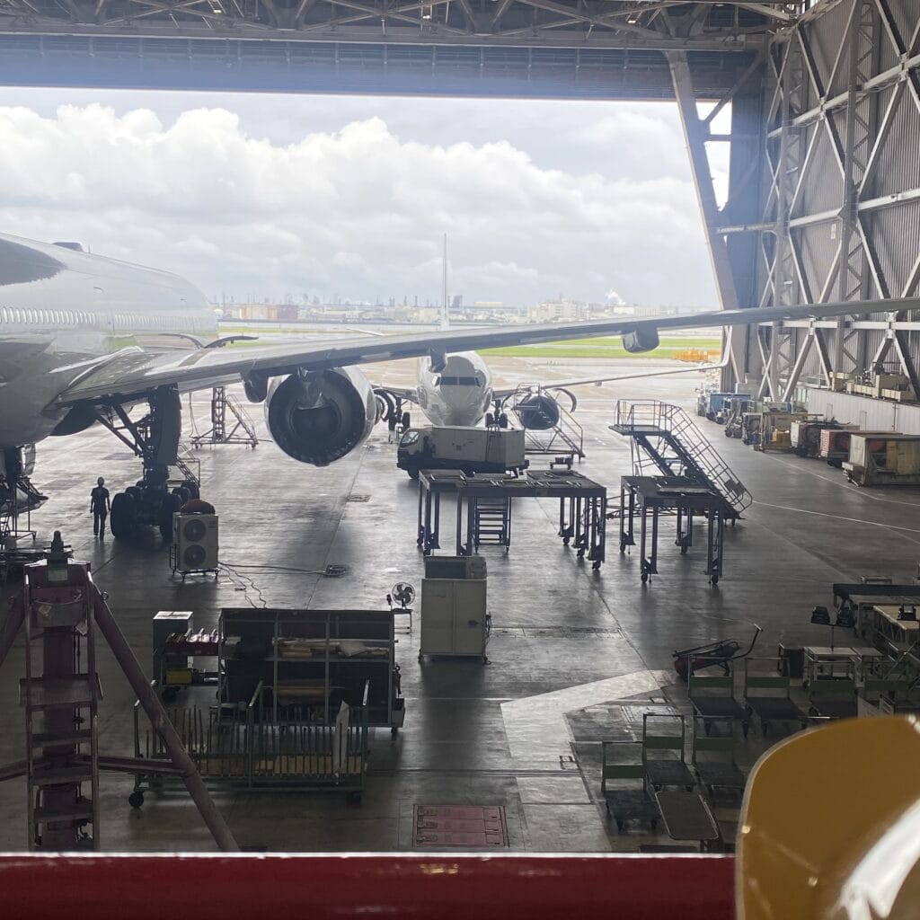 圧巻!格納庫で飛行機のスケールの大きさに感動
