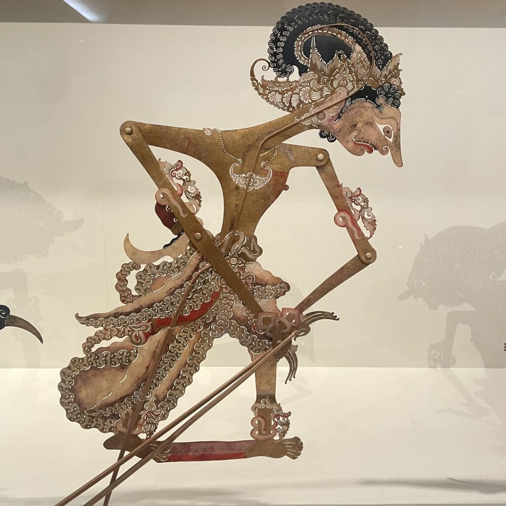 インドネシアの影絵芝居で使われるのワヤンクリットの人形は、繊細な模様が美しく