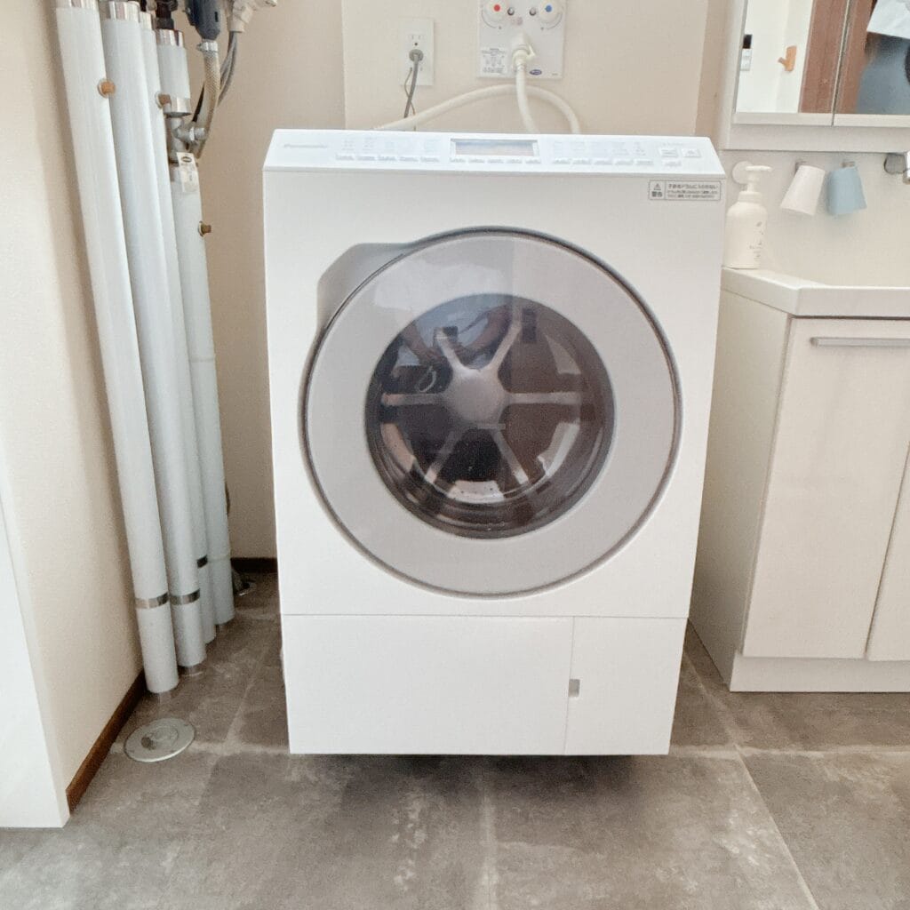 日立とPanasonicでギリギリまで迷って、日立は乾燥機フィルターが自動掃除になっていて、Panasonicは自動洗剤投入口が3つある。最終的にデザイン性の高さとランニングコストが少し安かったことでPanasonicにした。