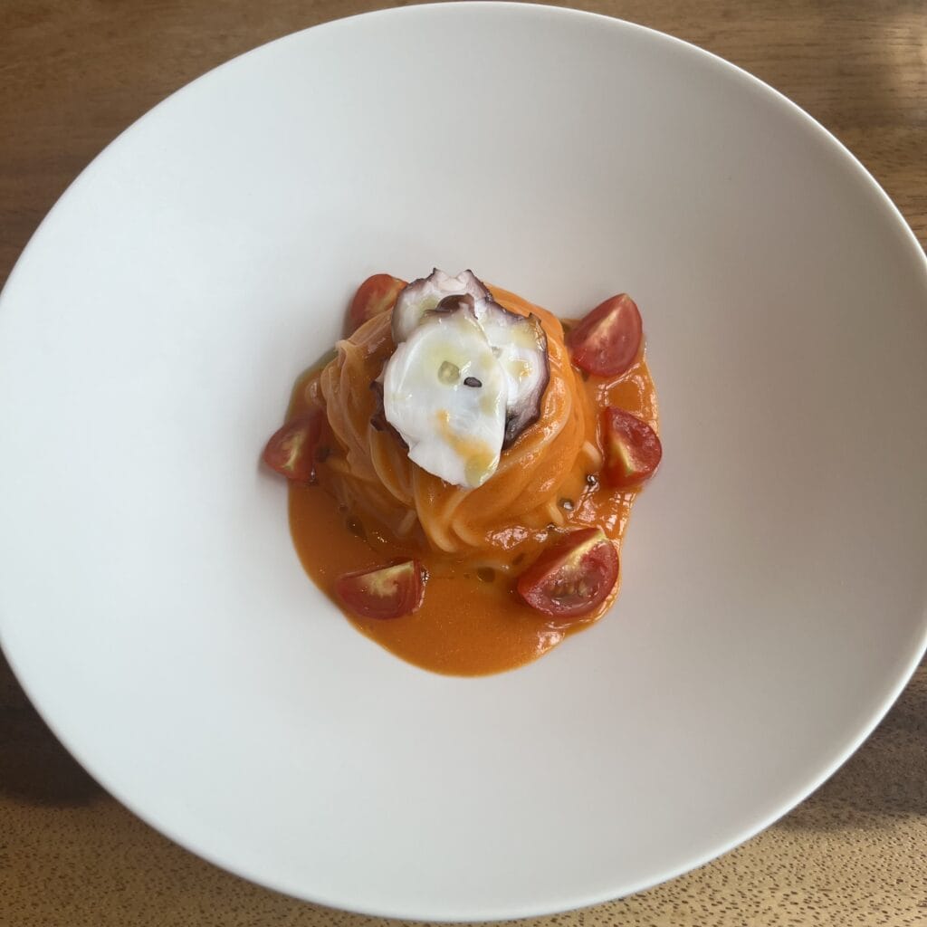 桃太郎トマトを使用した、冷製パスタ。