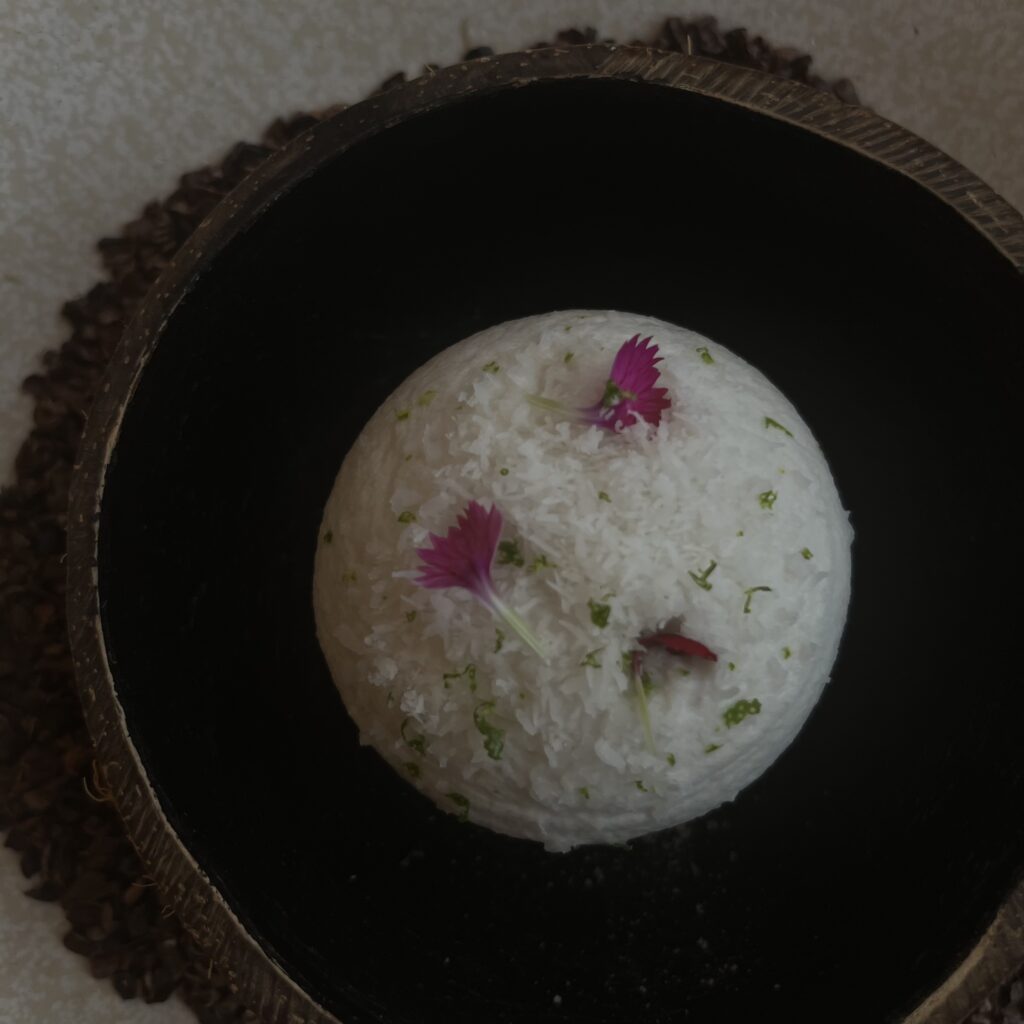 上にふんわりメレンゲのようなココナッツが…