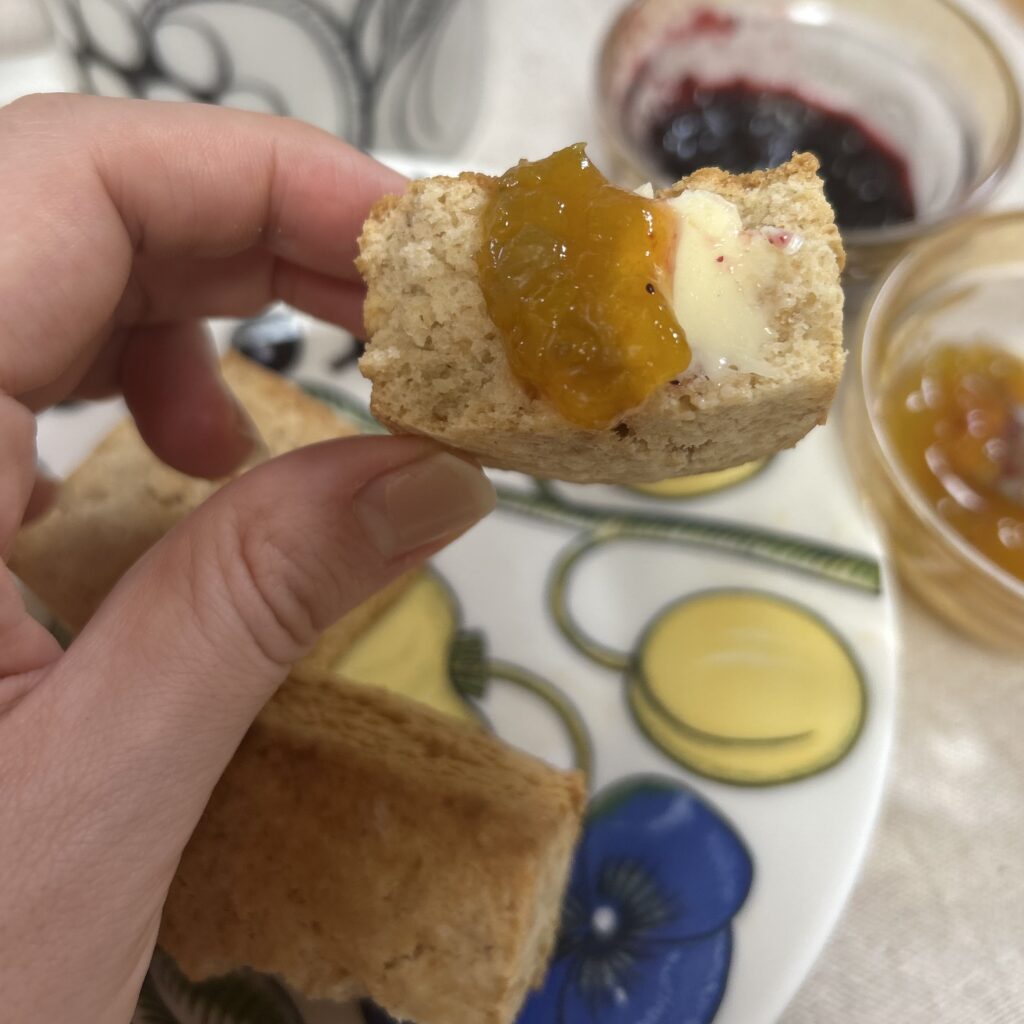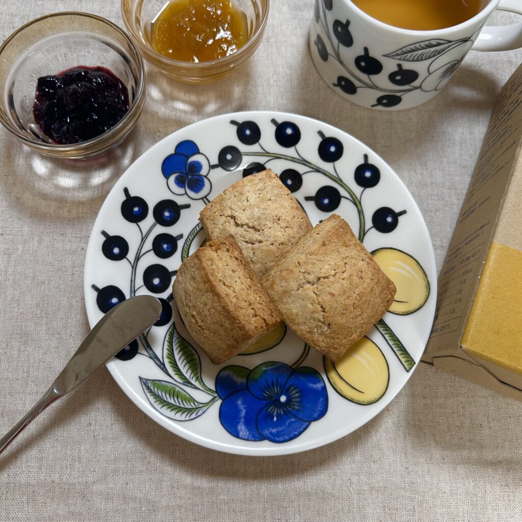 手順は簡単。小さく切って冷やしておいた分量のバターをミックス粉と混ぜたら牛乳を入れてまとめます。それを冷蔵庫で冷やした後、成形し180度のオーブンで20分焼くだけ。