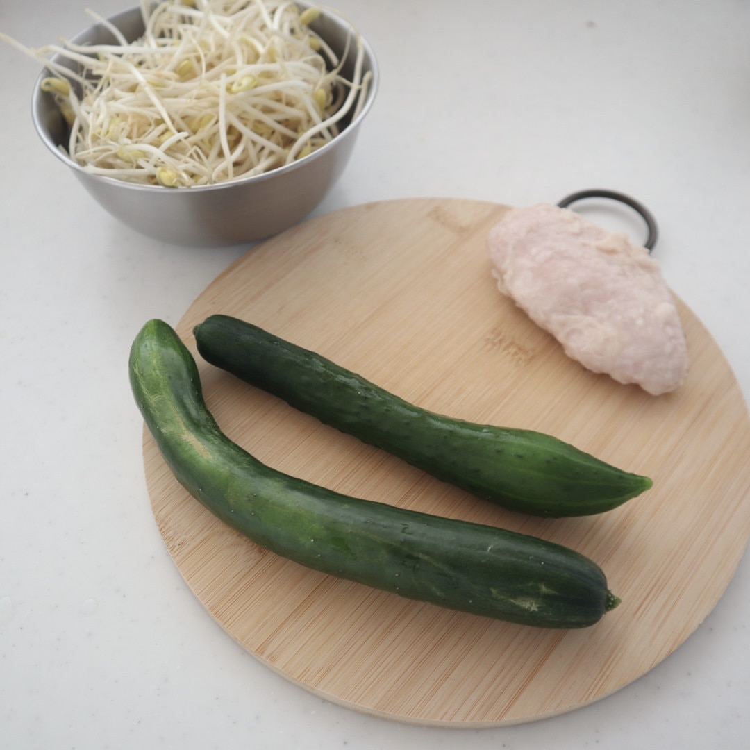 食材は、きゅうり・サラダチキン・豆もやし