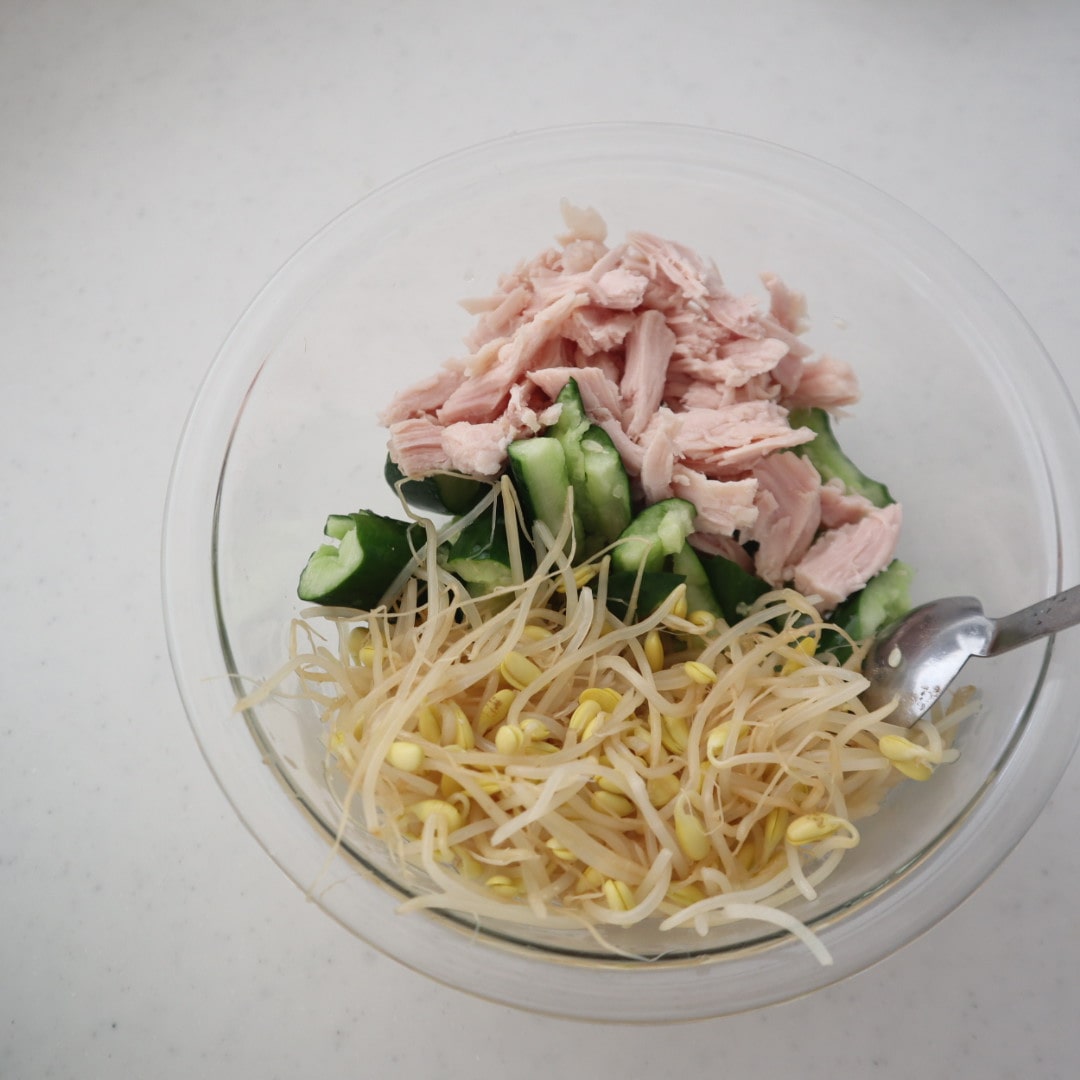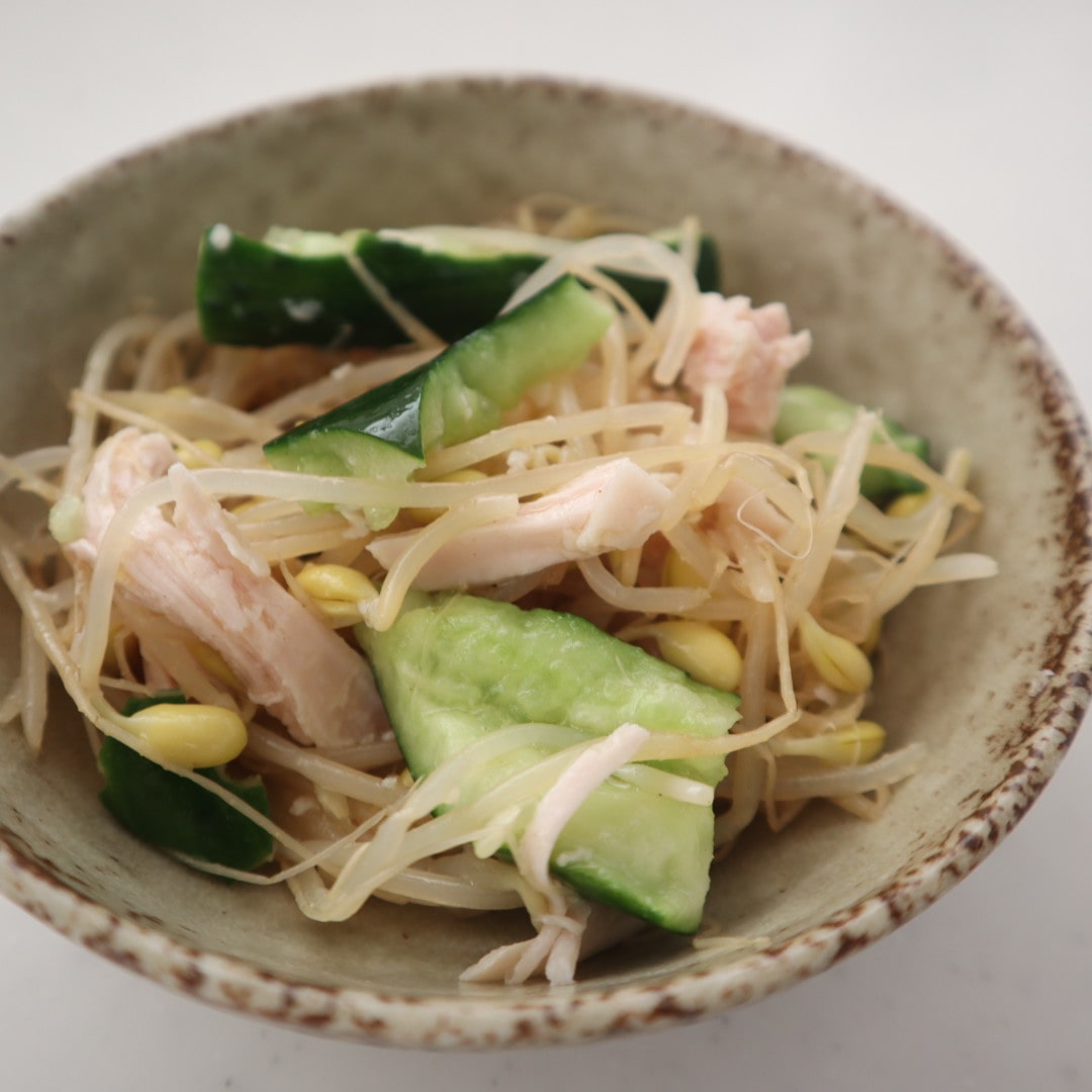 サラダチキン、きゅうり、豆もやしのナムル