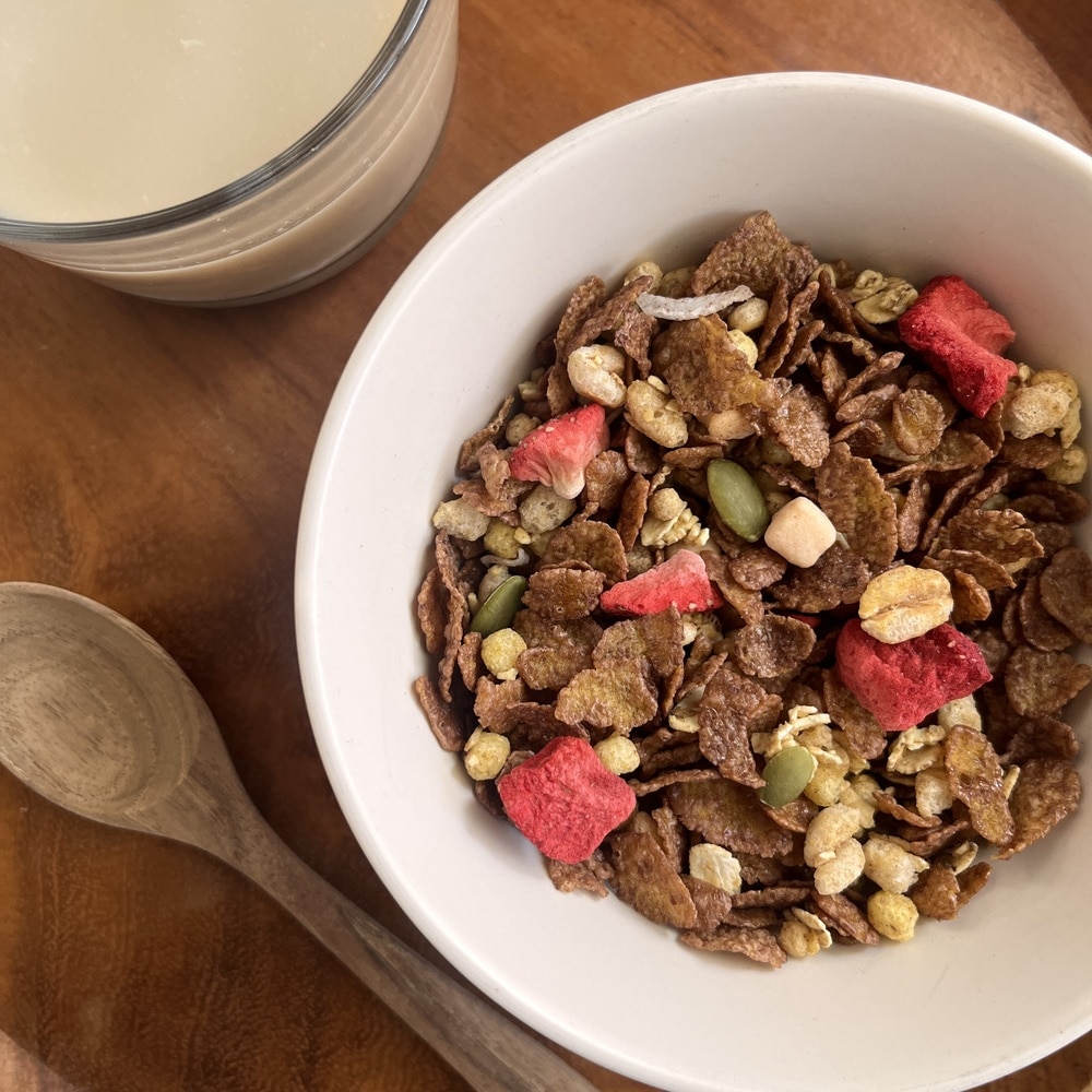 ザクザクとしたフレークの食感に、パッションフルーツやフリーズドライいちごが加わり、ひと口ごとに食感や味の変化が楽しめます。