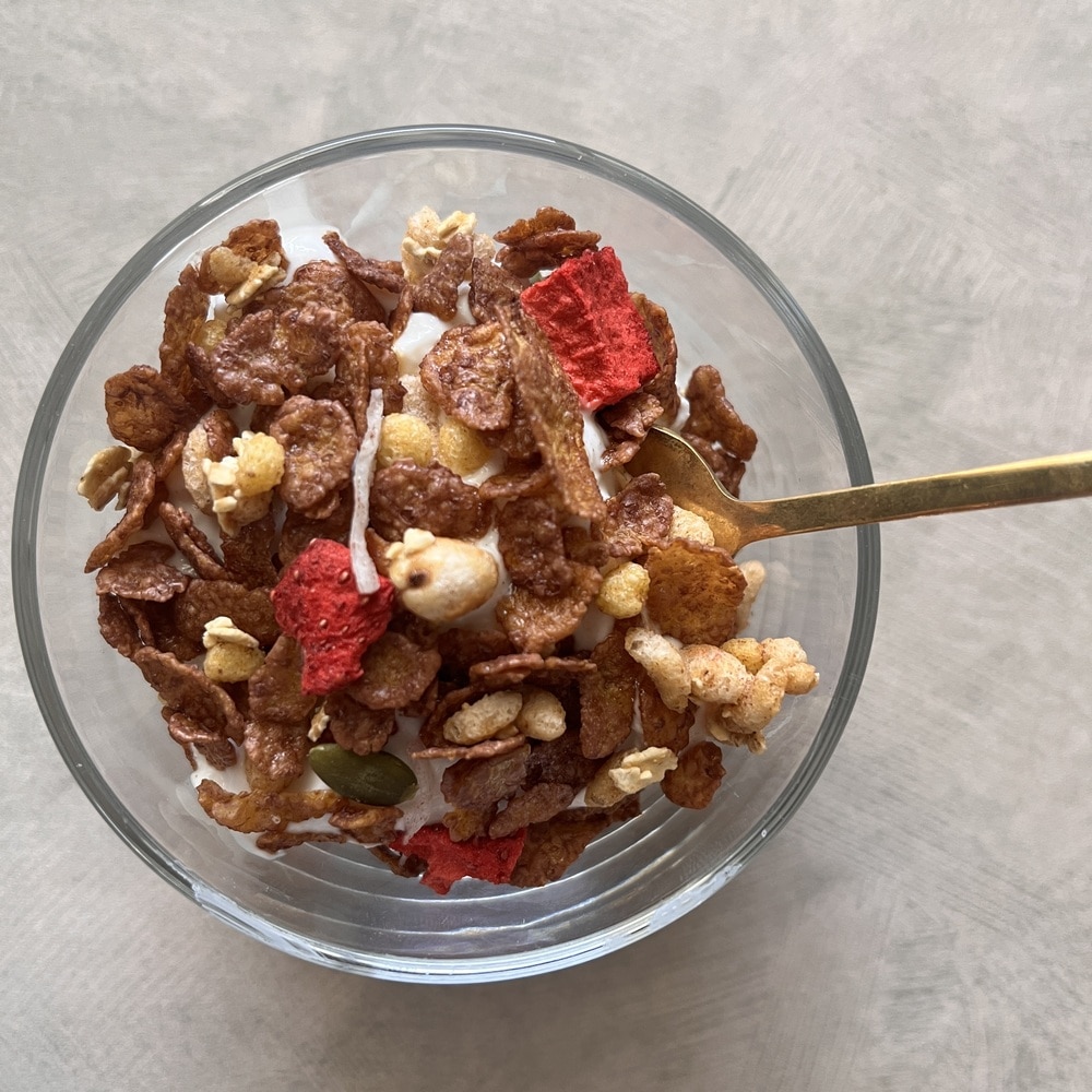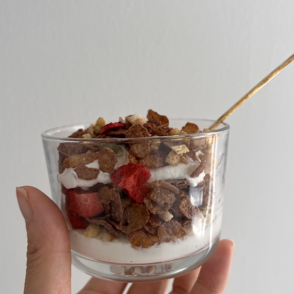 高タンパク質・脂質ゼロのギリシャヨーグルトと合わせるのもおすすめ。