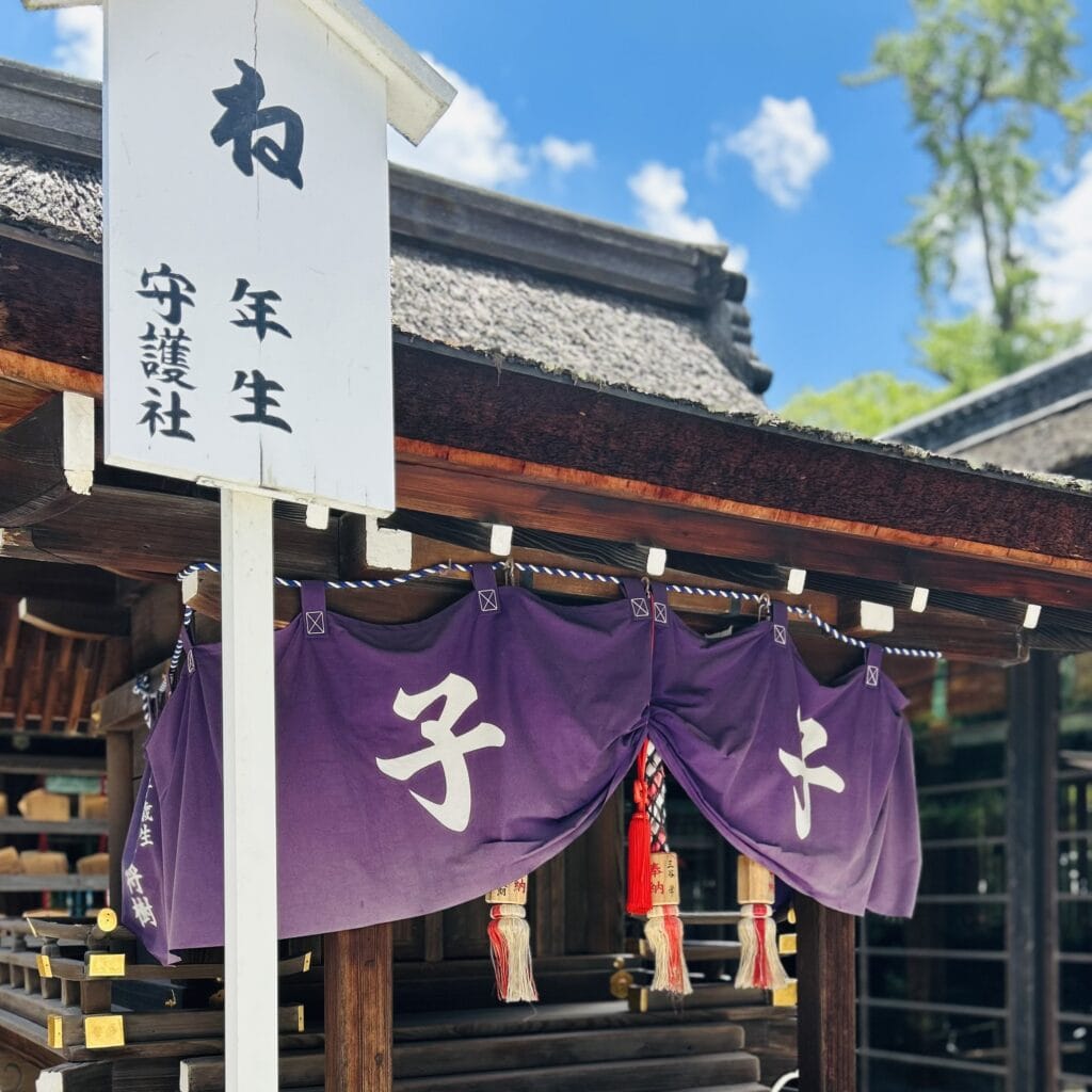 本殿の手前に干支の守り神を祀った七つの小さな社「言社」があり、それぞれの干支の社へお参りも。