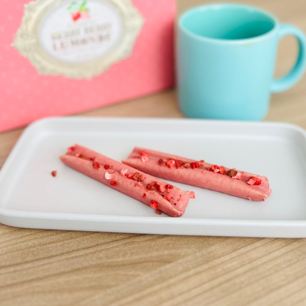 豪華なピンク色のパッケージをあけると、フリーズドライの苺でおめかししたピンク色のルマンドが並んでいました。