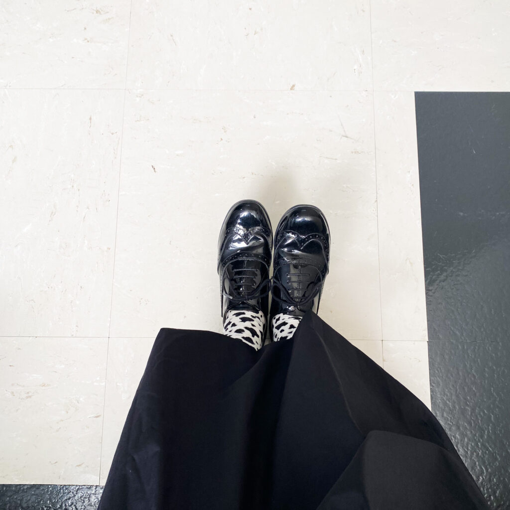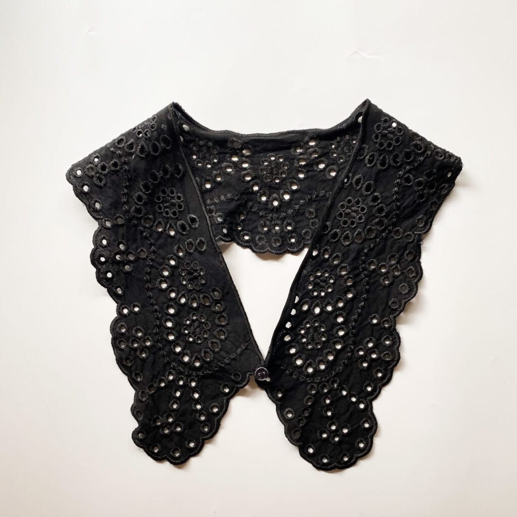 つけ襟をするだけで、違った装いに見えるので、つけ襟は黒小物で遊べる最強アイテムです。