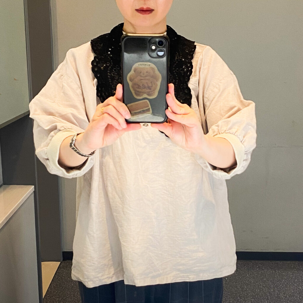 見えづらくてすみません・・・シンプルなカットソーにつけ襟をプラス。