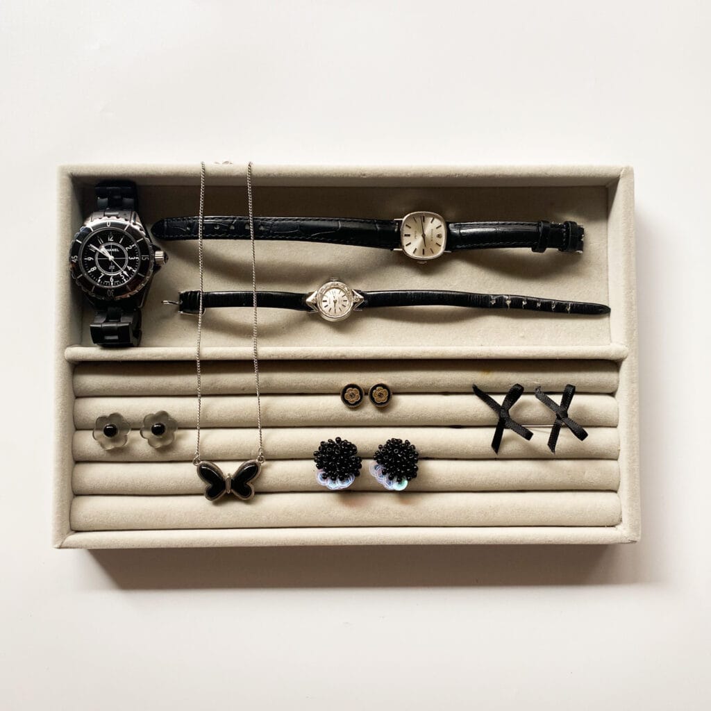 わたしをずっと鼓舞させてくれる大事な時計たち。他にも名品ばかり。カジュアルだけどブラックだからどことなく重みや品を出してくれる黒小物たちばかり。