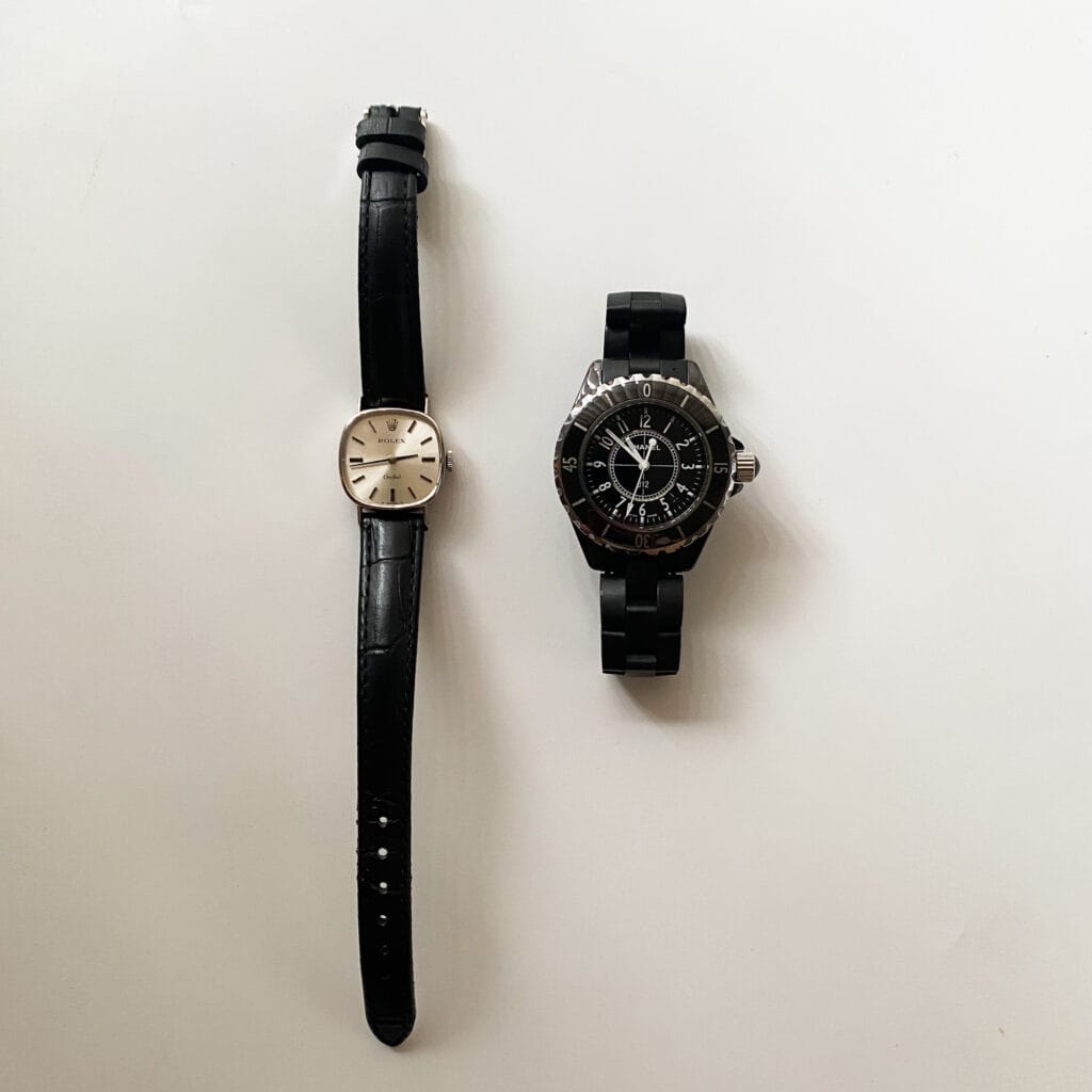 左は祖母から受け継いだロレックス。そして右は独身の頃、思い切って百貨店で購入したCHANELのJ12。独身のわたし、よくやった!