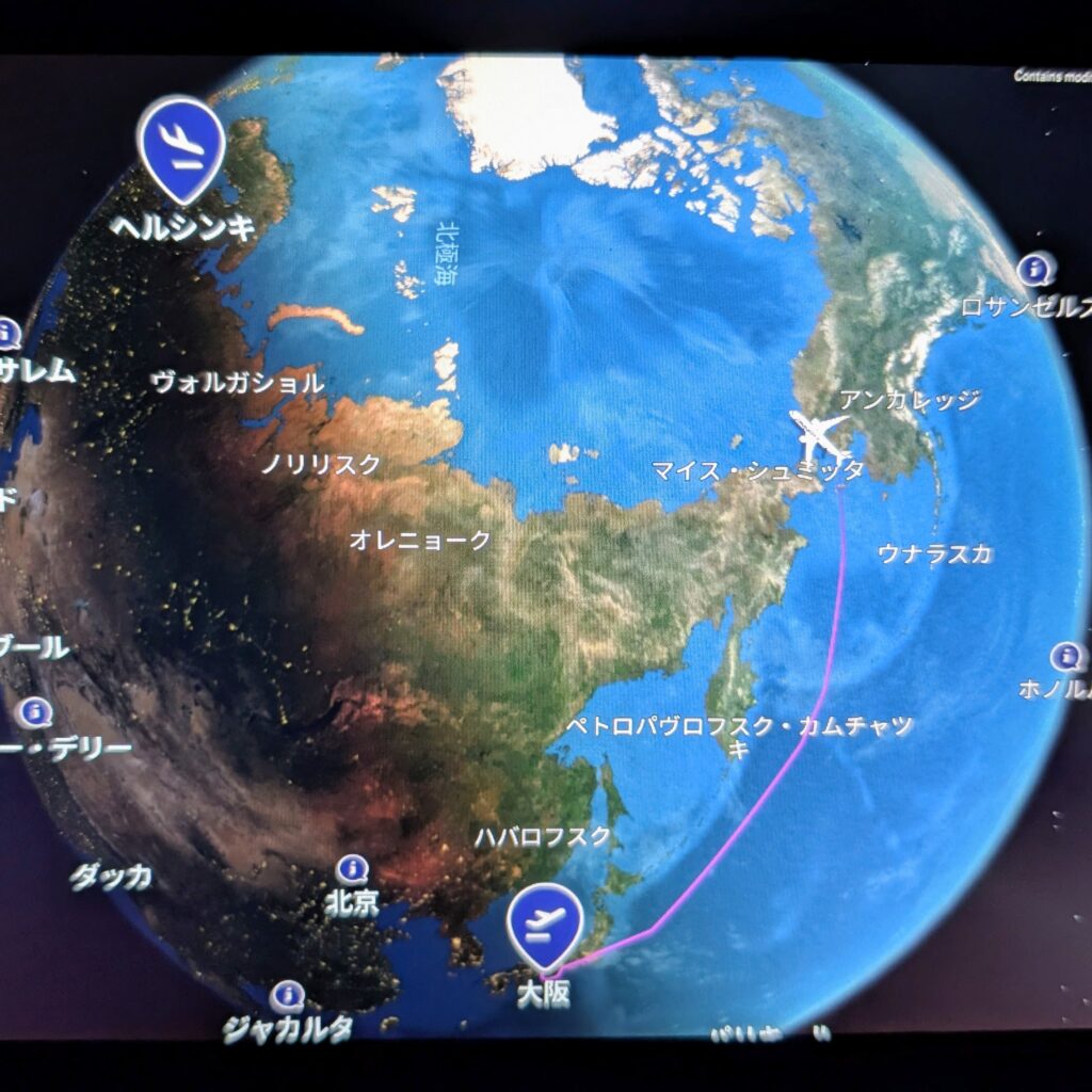 大阪の関西国際空港から直行便のフィンエアーにてヘルシンキまでは13時間の旅。関空からは22:30発。4泊6日の旅です。