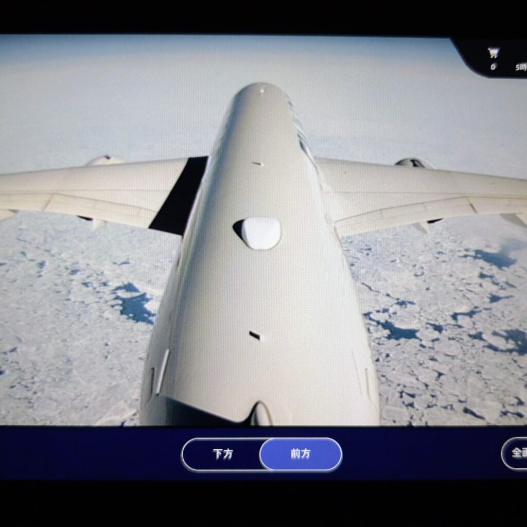 フライト情報はいつでも見れる機内。これ、どんな角度からでも見られるんですよ。すごい。
