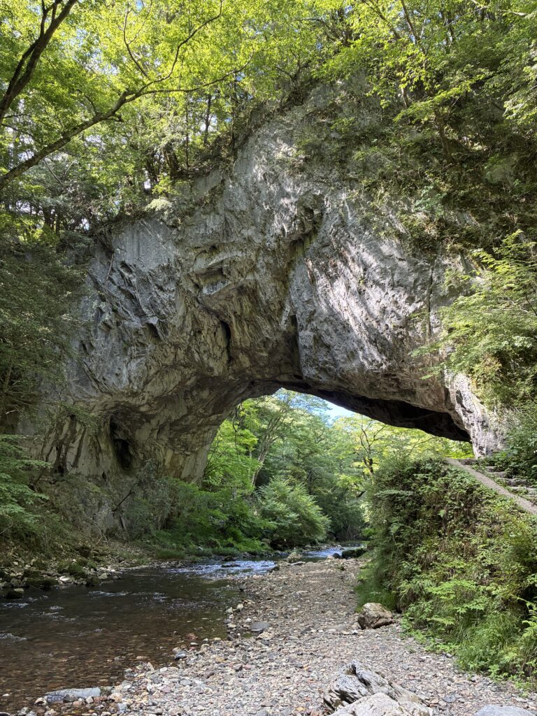 長い年月をかけて石灰岩質の地形を帝釈川が削り、地中に洞窟を作り、洞窟の天上崩落が起こりますが、一部崩落せずに残った所がこのような形の橋になったと考えられています。