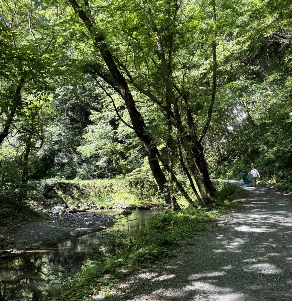 7月末の猛暑日でしたが、駐車場から雄橋までの遊歩道は木陰になっているので意外にも涼しく、太陽の光がキラキラ差し込んでとても綺麗でした。