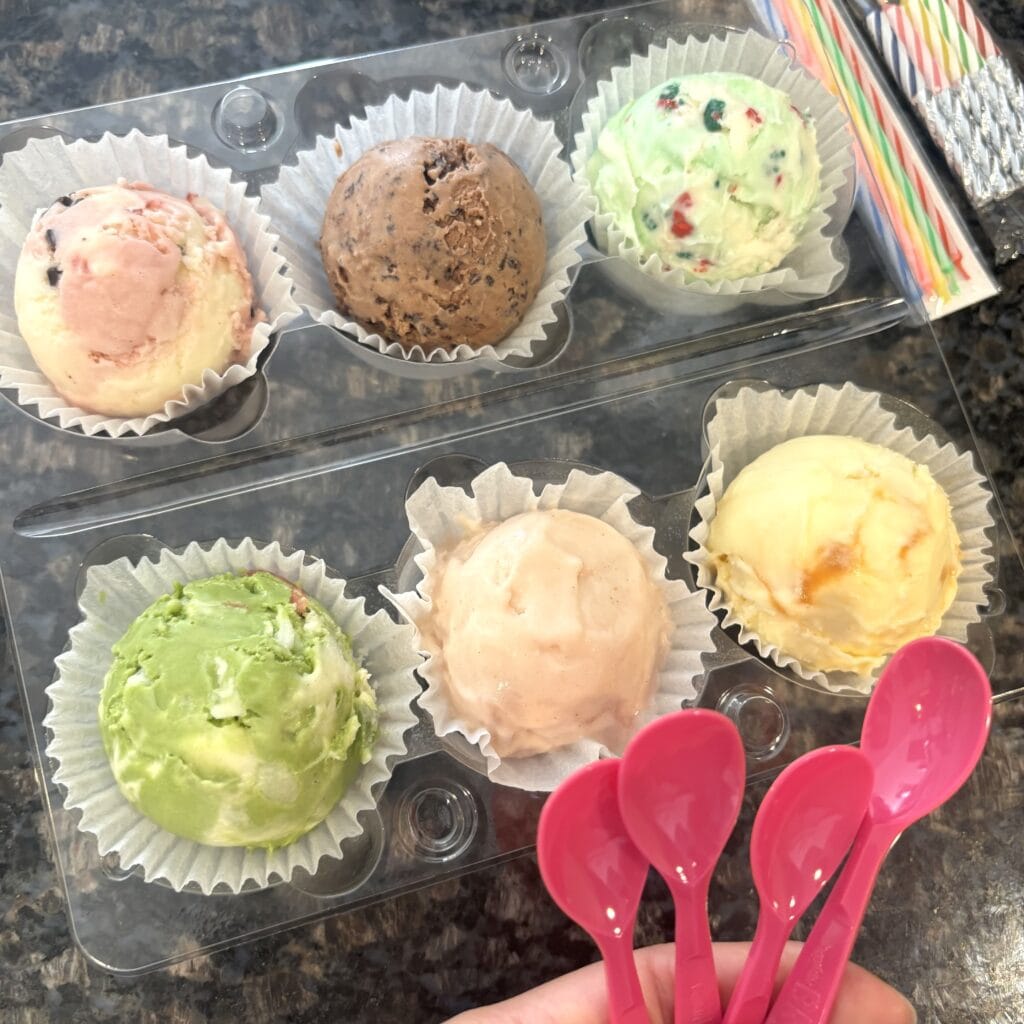 というセットで、自分で好きなアイス6種類と、トッピングを選んで作ることができます!