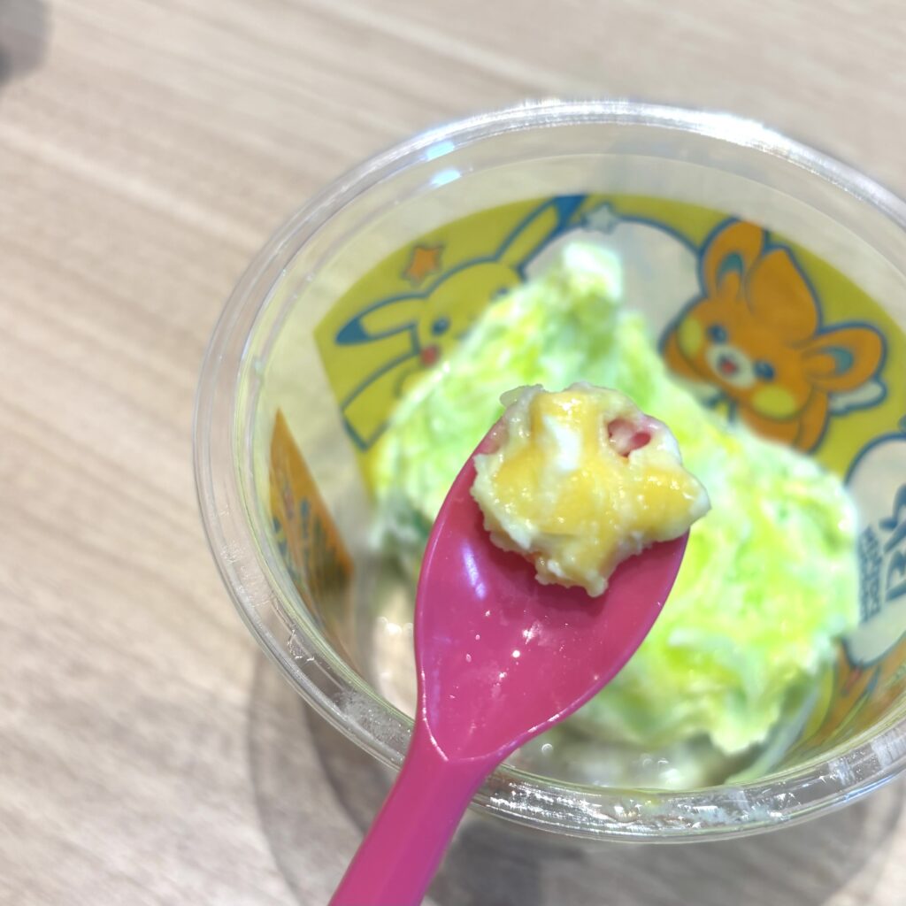 9/3までの期間中、サーティワンではたくさんのポケモンコラボ商品が出ていますが、今回は新作フレーバーとして期間内に出ている「ピカチュウトロピカソーダ」を食べました!