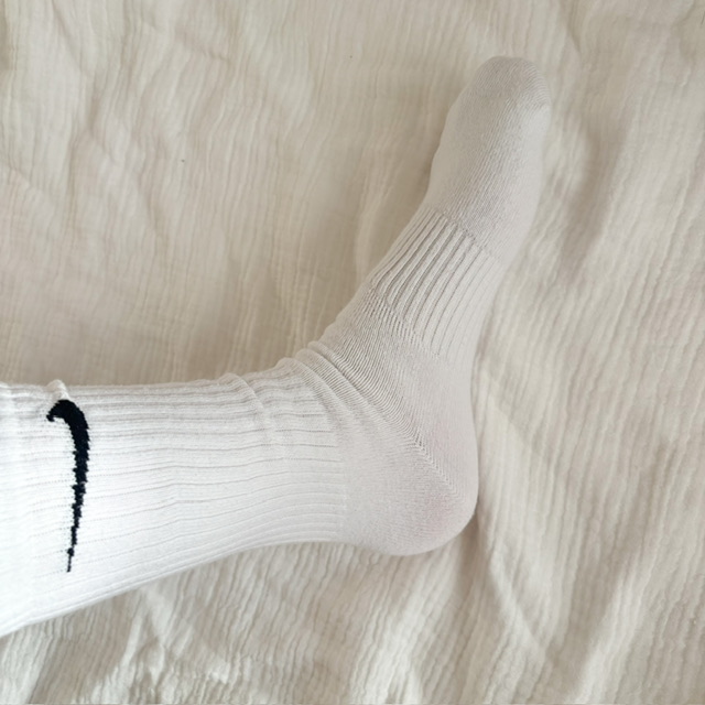 今までは好きな色や柄の靴下を購入していましたが、結局合わせやすいのは白の靴下では?と原点回帰しました。