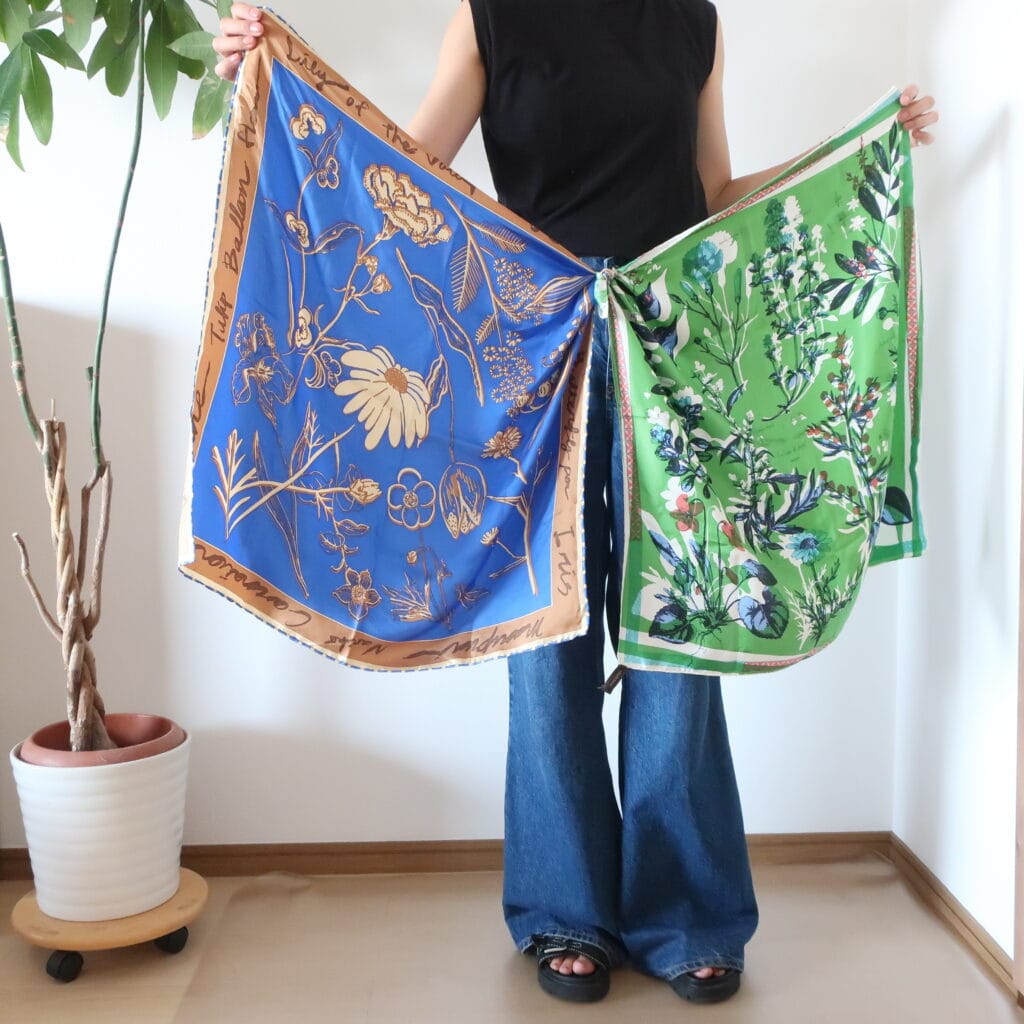 日本発のスカーフブランドで、ヨーロッパのヴィンテージスカーフから着想を得た、美しいプリントと配色が特徴です。