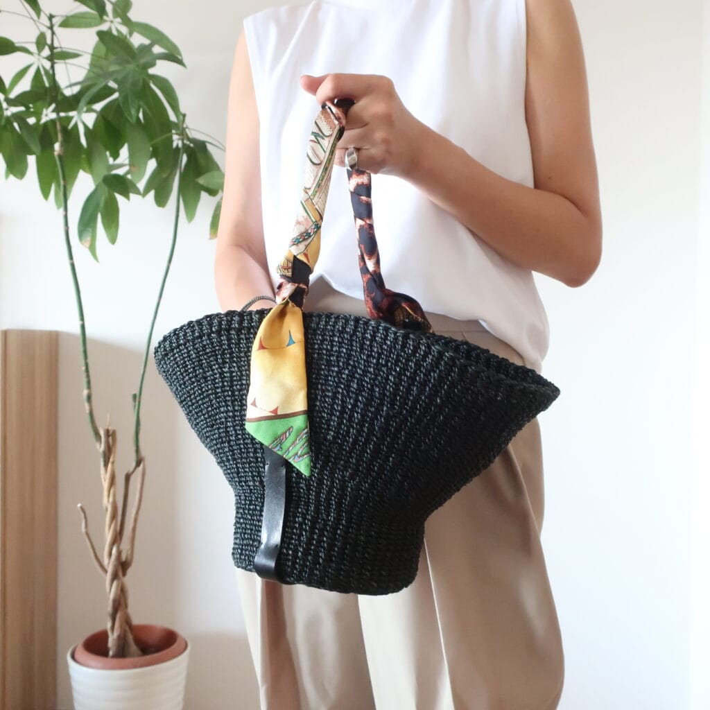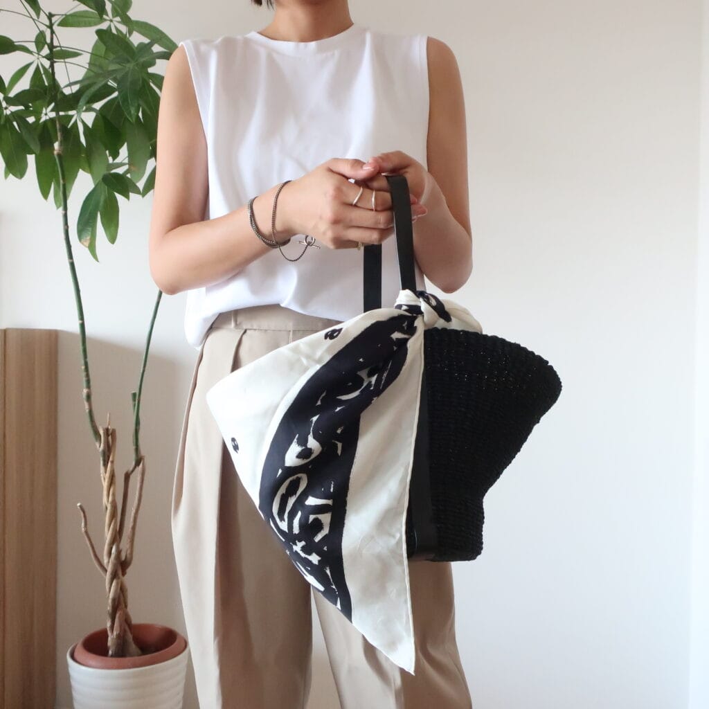 バッグに巻くのも、印象が簡単に変わるのでいいですね。