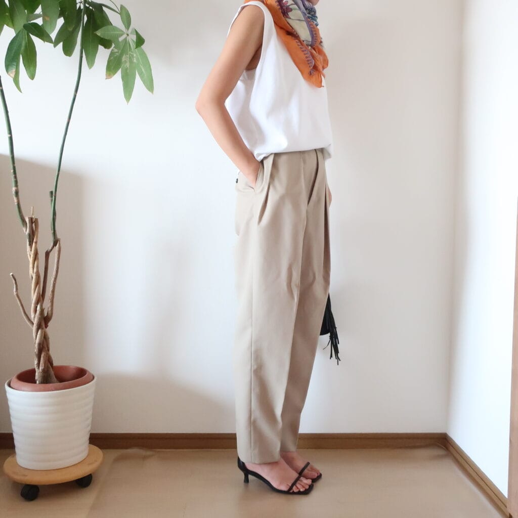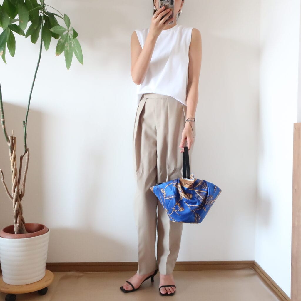 最近トレンドとしてよく出てくるのがこうして腰に三角に巻く方法。季節問わず使えそうです。