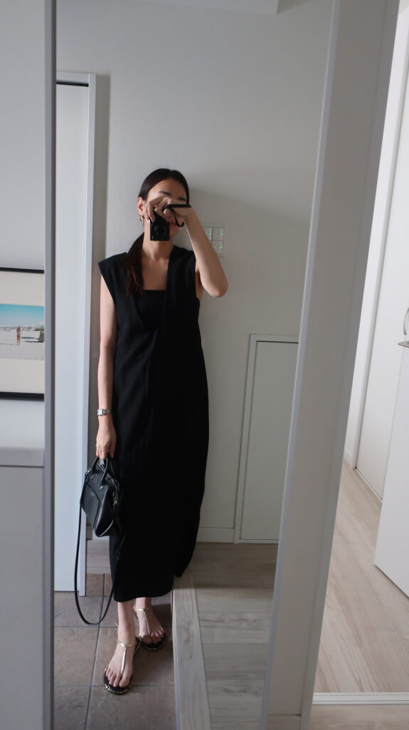 私が選んだのは、style mixer の黒のシアーシャツと crie confort の黒のワンピース。