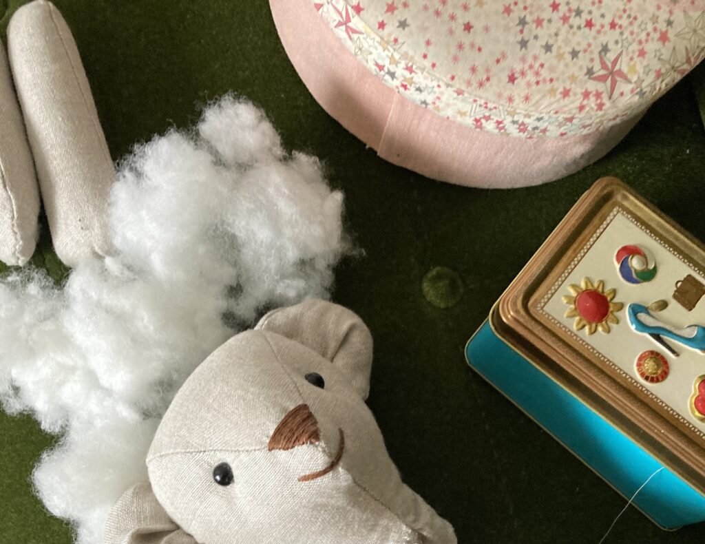 ぬいぐるみって、顔の刺繍や綿の詰め方で全然違うものになりますよね。クタっと感がなかなか出ない…やっぱり年季が入ったからこその可愛さなんだなぁ。