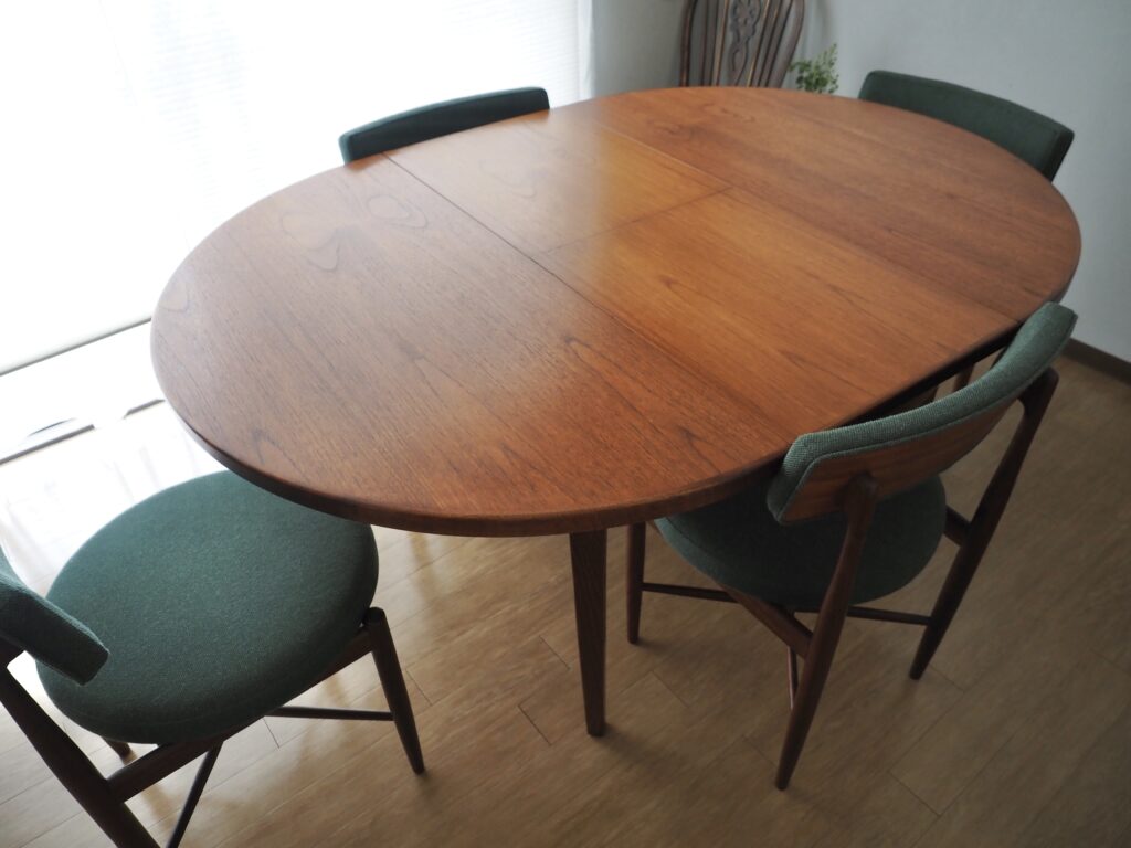 憧れていたチークの丸テーブル。子供が大きくなり大人用の椅子に座れるようになったのを気に買い替えました。