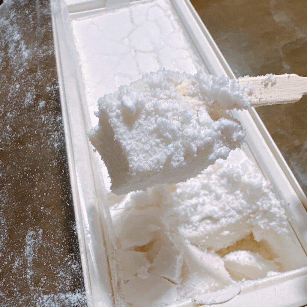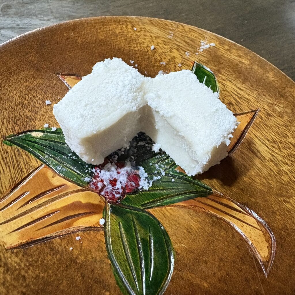 パウダーだけでなく、わらび餅にもココナッツが練りこまれているのが分かります。