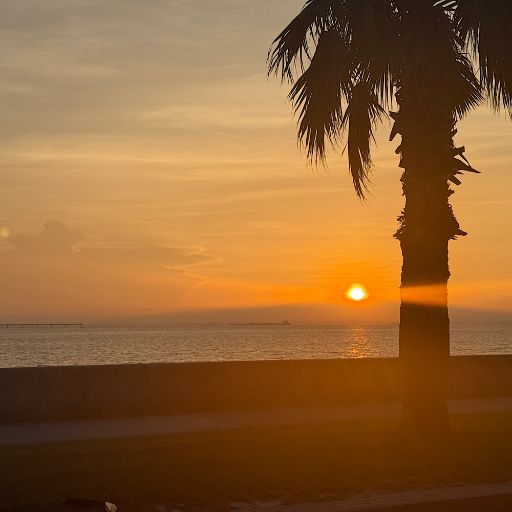 オレンジ色に染まる空と海の美しさに感動し、心に残る景色となりました。