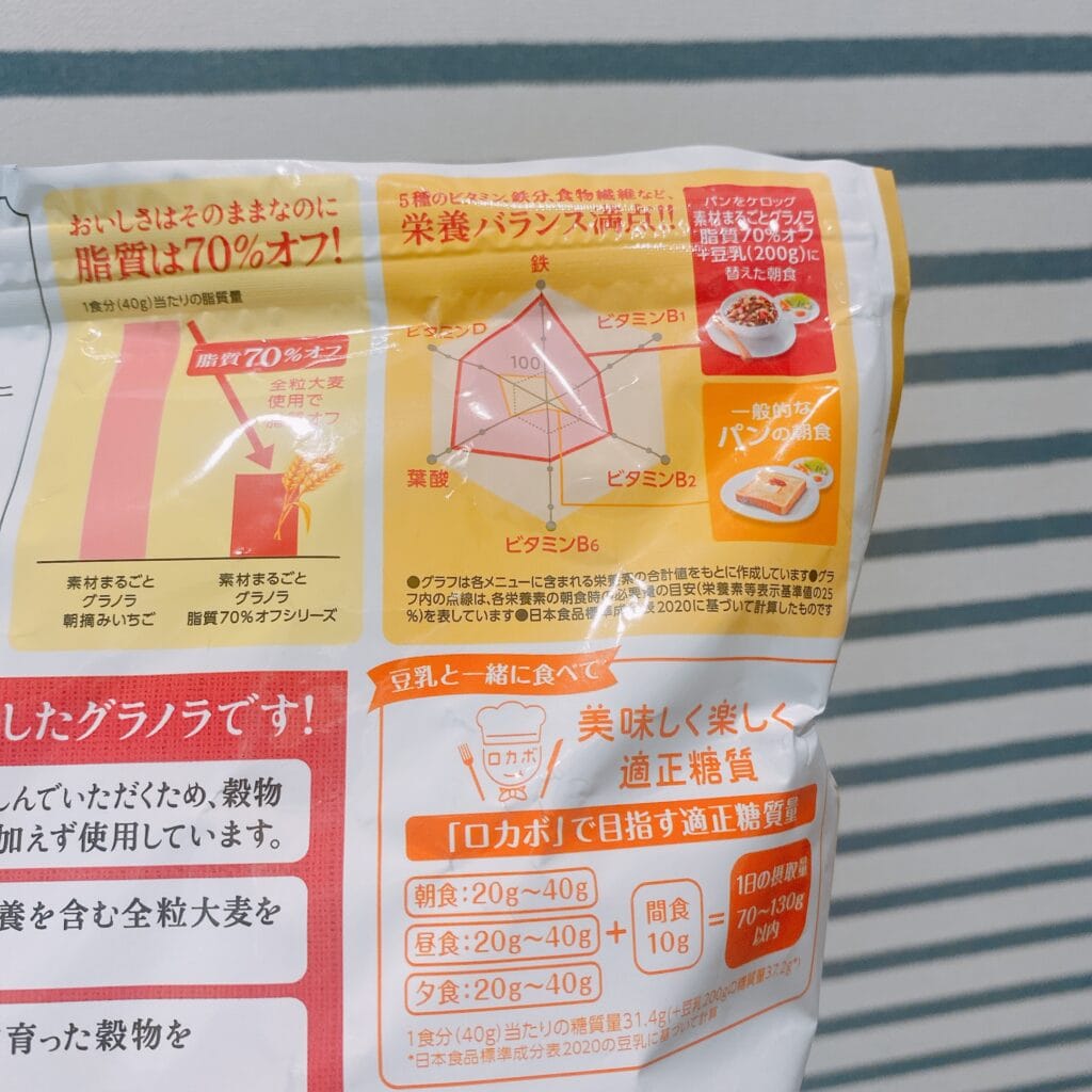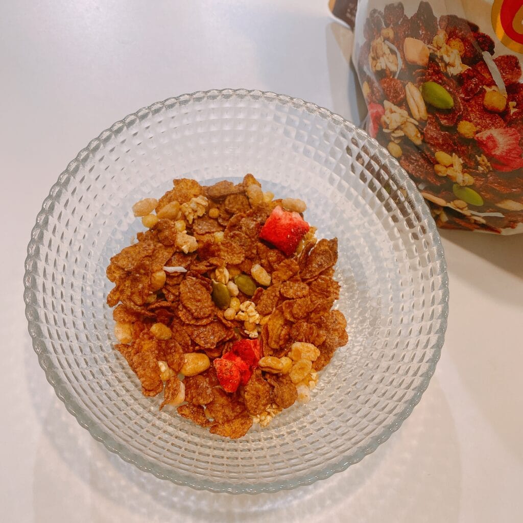 この「素材まるごとグラノラ 脂質70%オフ 華やぐフルーティショコラ」を袋からお皿に出して食べていたのです!