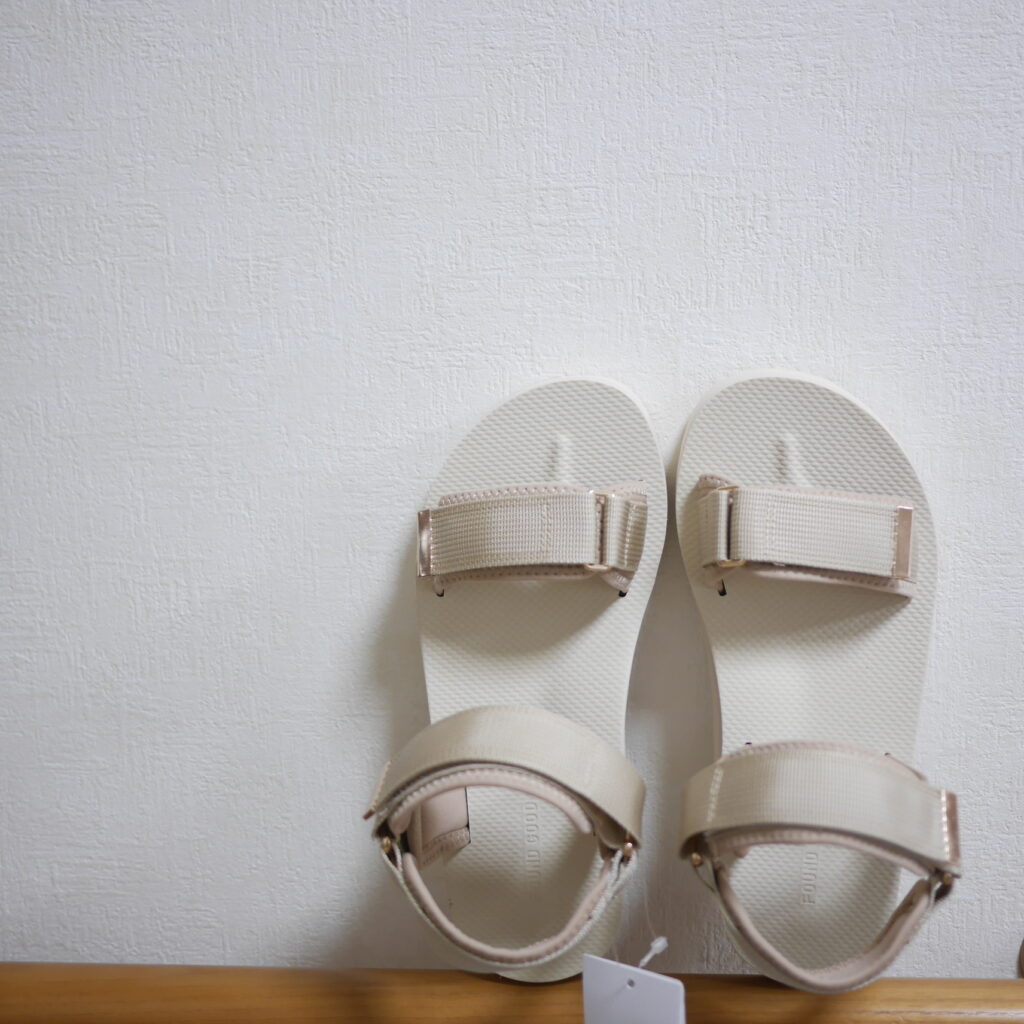 ビーサンにマジックテープのベルトがついているようなイメージで、軽くて履きやすい!