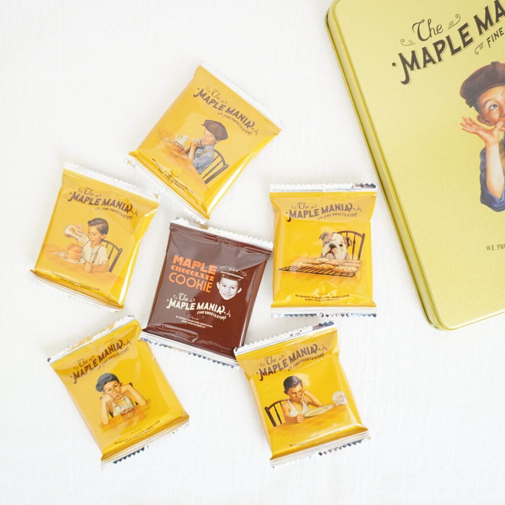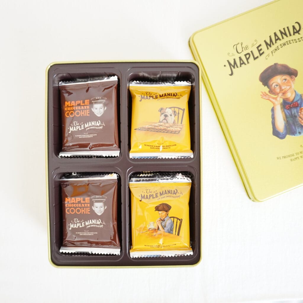 メープルクッキー缶は、メープルバタークッキーとメープルショコラクッキーの詰め合わせ。