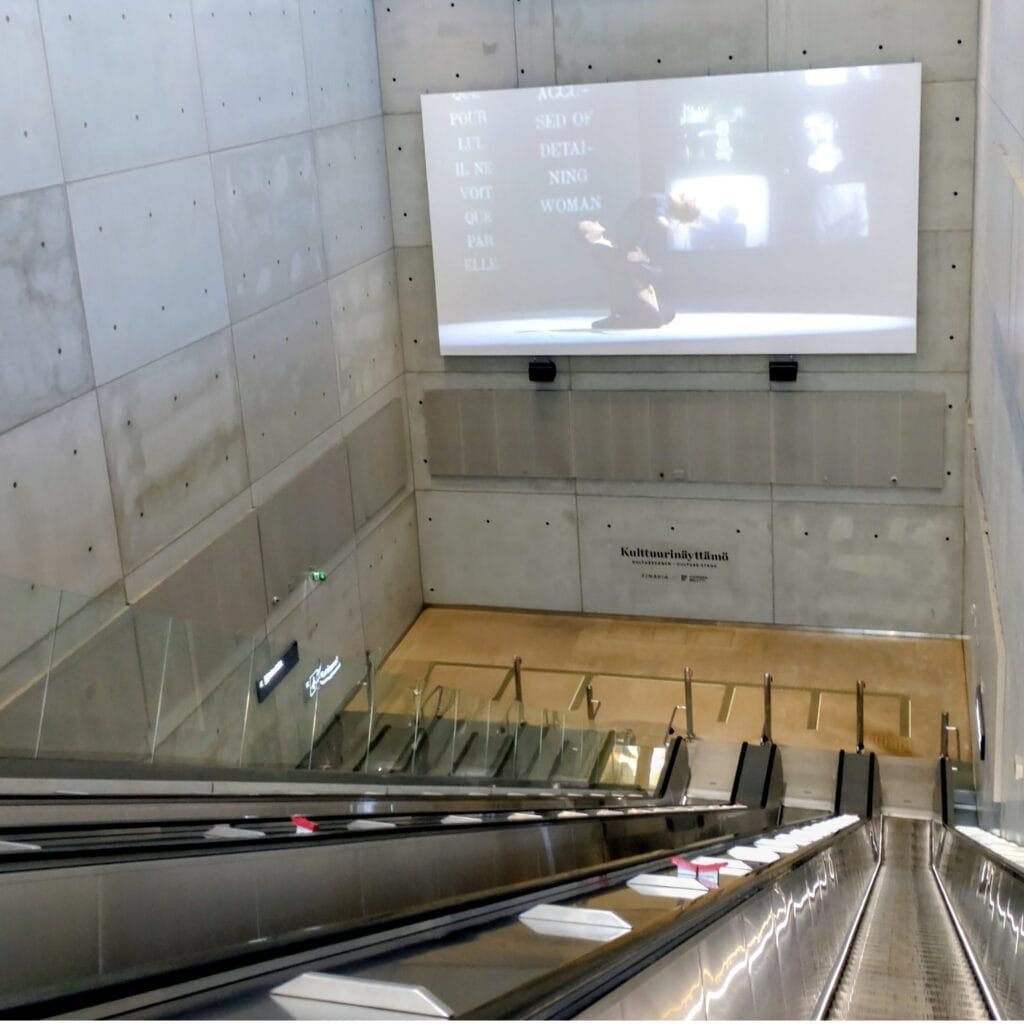 ヘルシンキ中央駅から地下鉄でヘルットニエミ駅へ。徒歩を含めてもヘルシンキ中央駅から30分ほどで行けるマリメッコ本社。