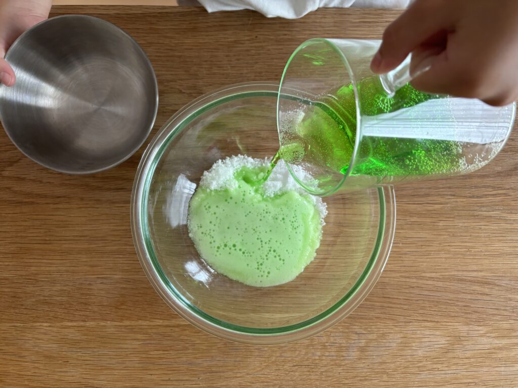 まずは砂糖とジュースを合わせて混ぜていきます。