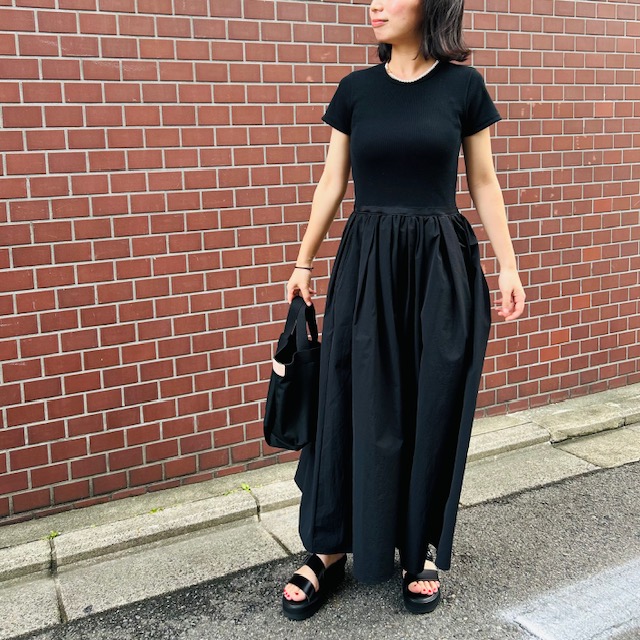 この日は家族とのカジュアルランチだったので、堅苦しくせずラフめに。あえての黒で統一です。お気に入りのMY WEAKNESSのワンピースにパールネックレスを着用しました。