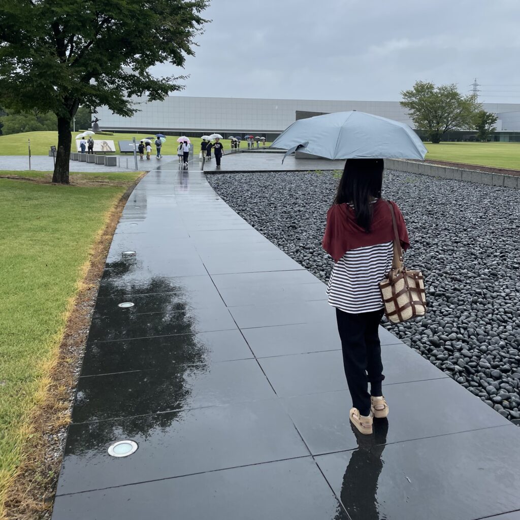 帰省スタイルは、シワにならず雨で濡れても乾きやすい素材のジョガーパンツに、ブラウンのボーダートップス+バーガンディのカーデを合わせました。小物はベージュ・ブラウン系で。