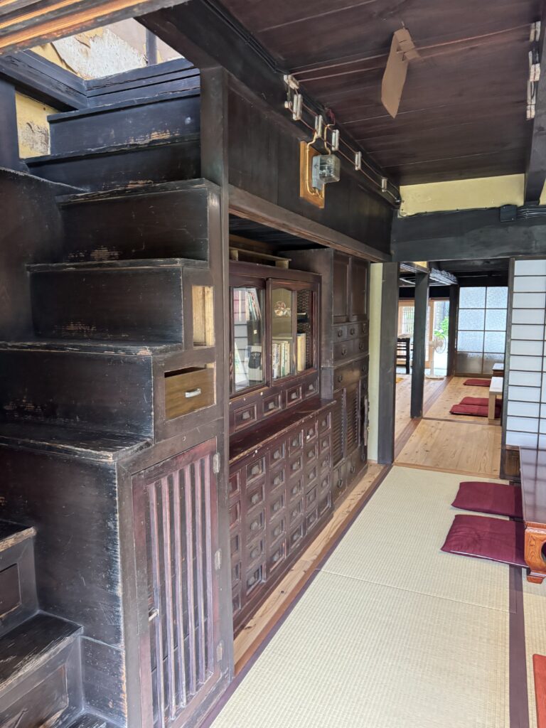 風通りの良い作りで土間は庭まで続いていて通り庭と呼ばれているそう。
