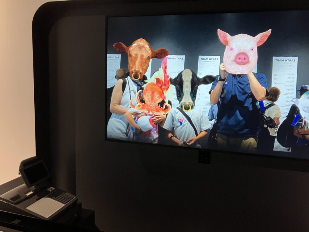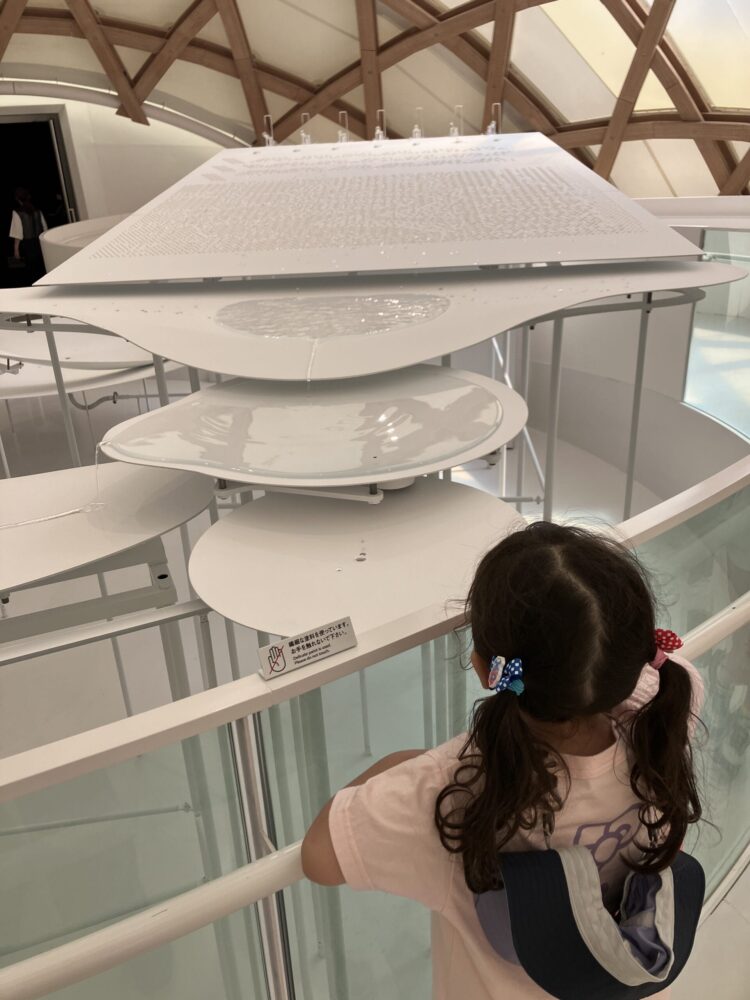 左がBLUE OCEAN DOME、右がEARTH MARTです。BLUE OCEAN DOMEは入ってすぐ、特殊な塗装がされた装置に水が固まり状に滑り落ちていくものがあり(語彙力…伝わります?)ここで子どもは釘付けに。主に海洋汚染についてのパビリオンでしたが、子どもにもわかりやすく説明・展示がされていました。EARTH MARTは小山薫堂さんプロデュースの、食に関するパビリオンで、展示も可愛く、世界の食卓が比較されていたり、こちらも大人も子供も楽しめました。最後の方、食べ物に変身できます。子どもオオウケ。私は牛になりました🐄
