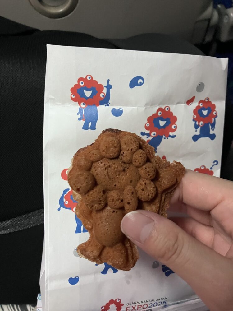 ふと寄ったお土産やさんがならんだエリアで購入したミャクミャクの人形焼き。これ、100人隊ブログで皆さん買っていて、欲しかったの…しかし疲れすぎてどこで購入したか記憶がない。