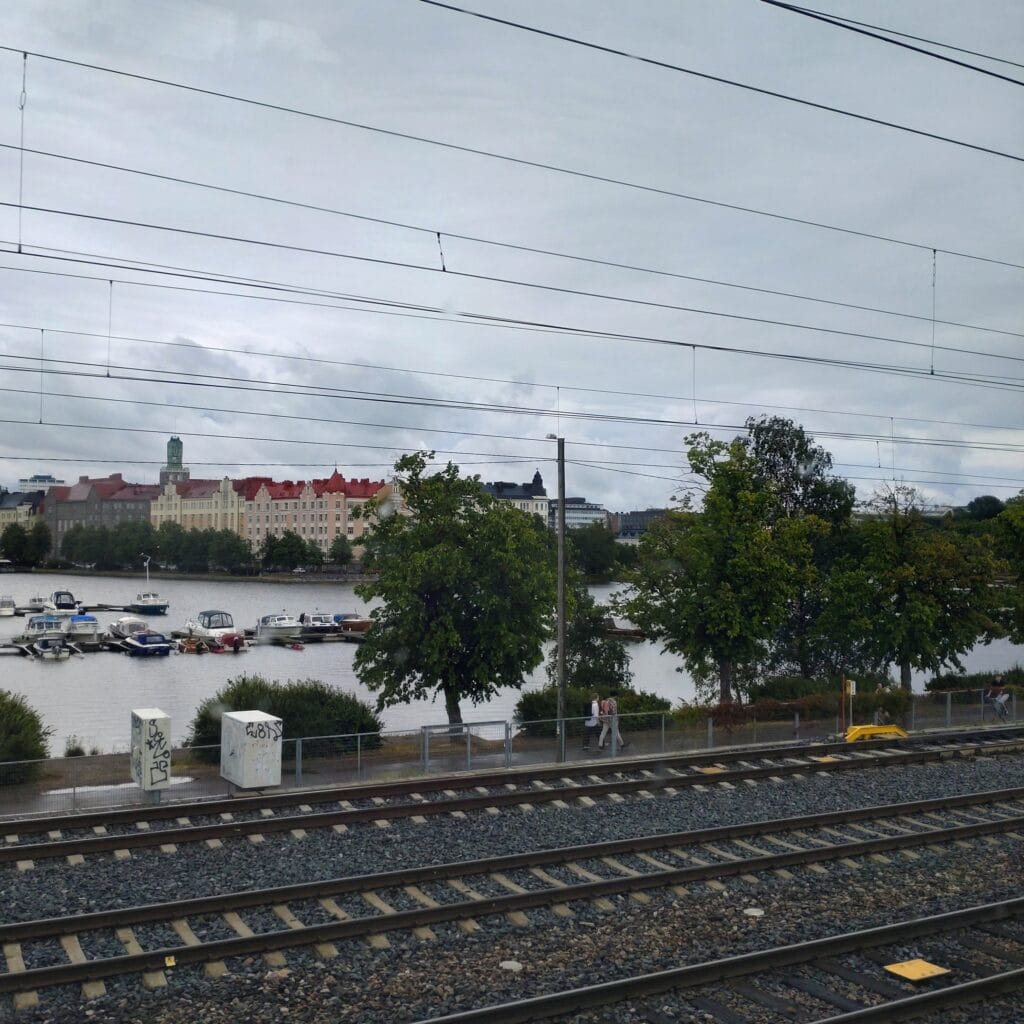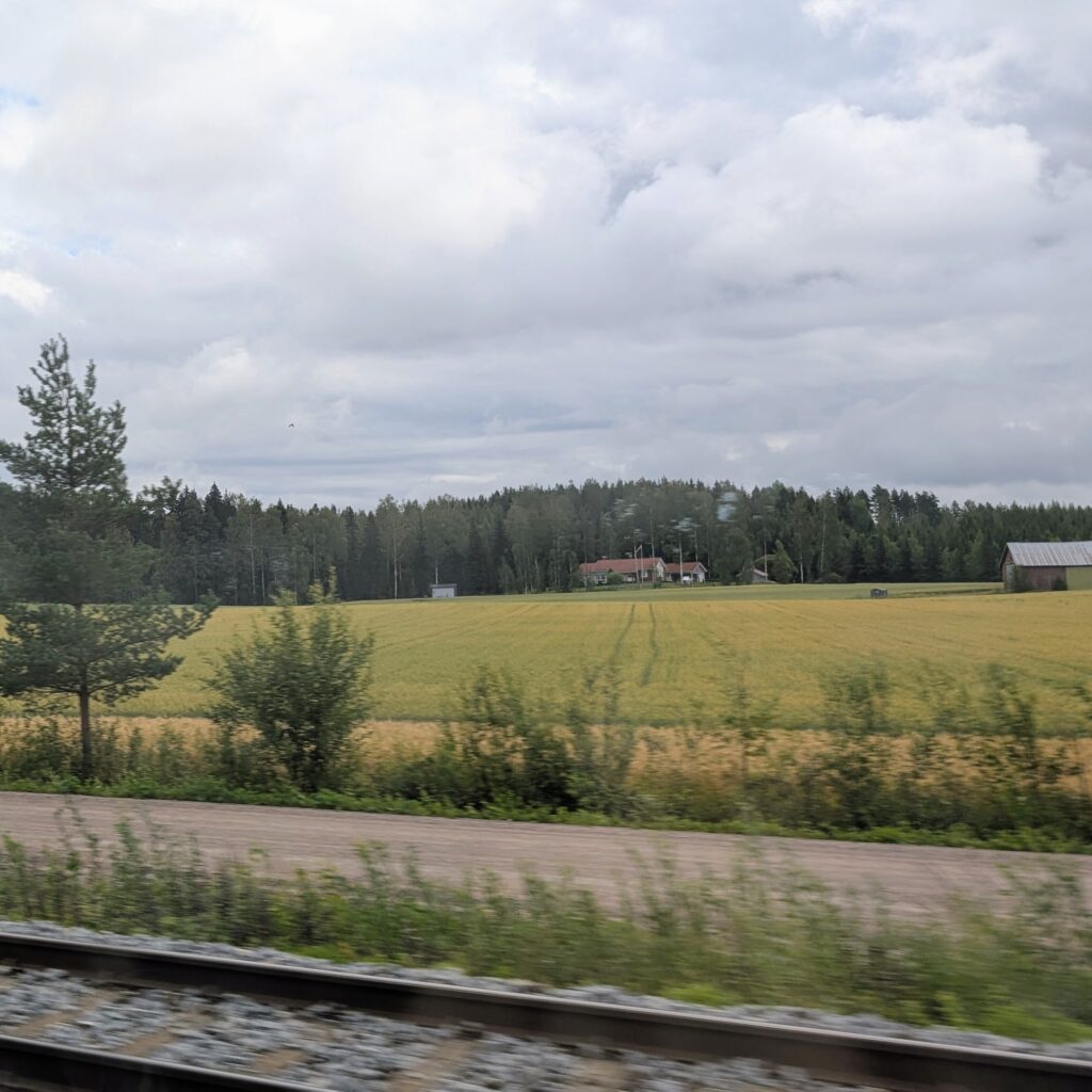帰り道の車窓から。途中、雨が降ってきました。もうすぐヘルシンキに着きます。