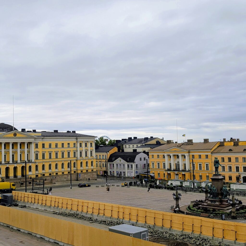 ヘルシンキ大聖堂からみた街。手前工事中です。これも貴重な記録。この日の天気は雨が降ったりやんだり。雨の合間の1枚です。