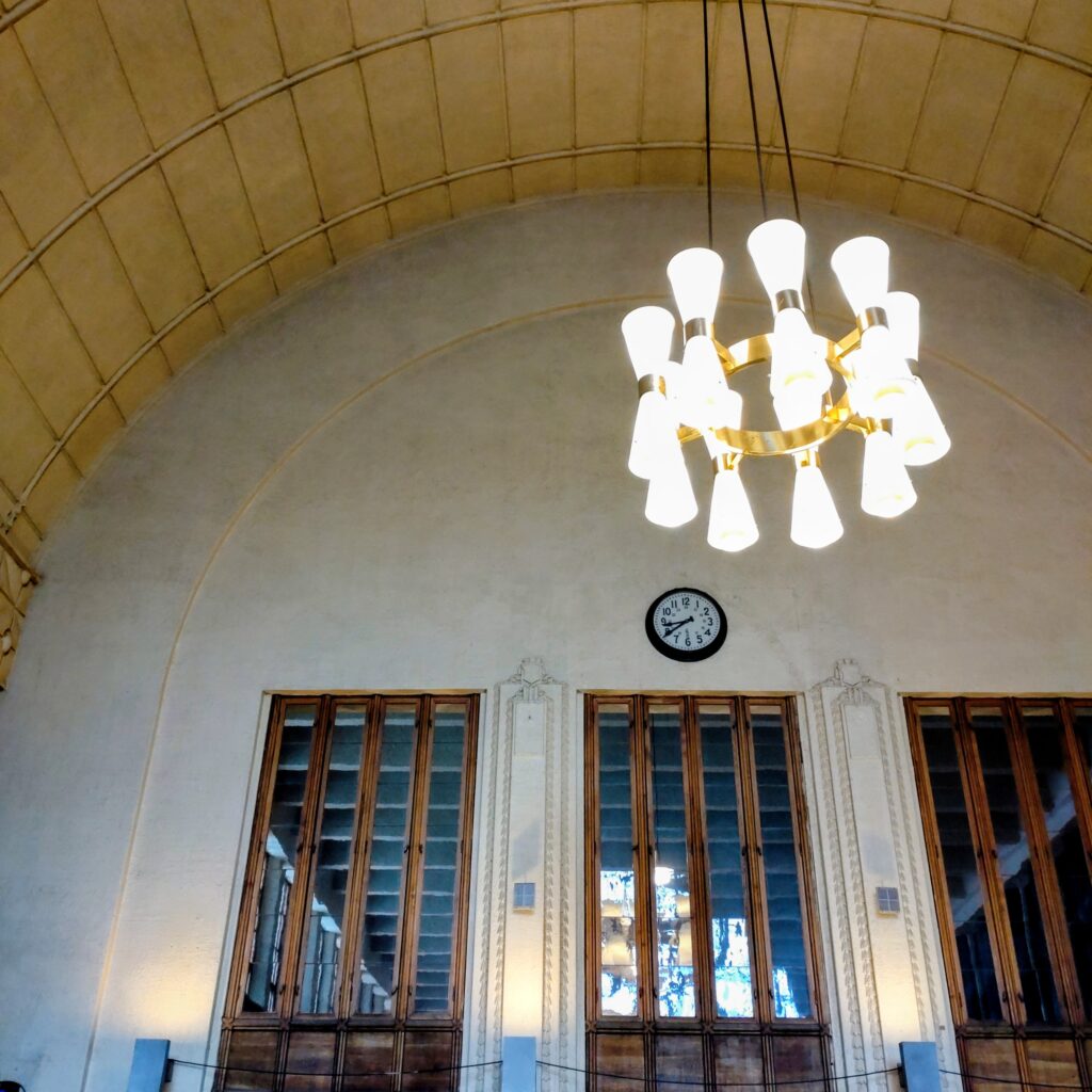 駅の構内。照明も時計も雰囲気ありますよね。