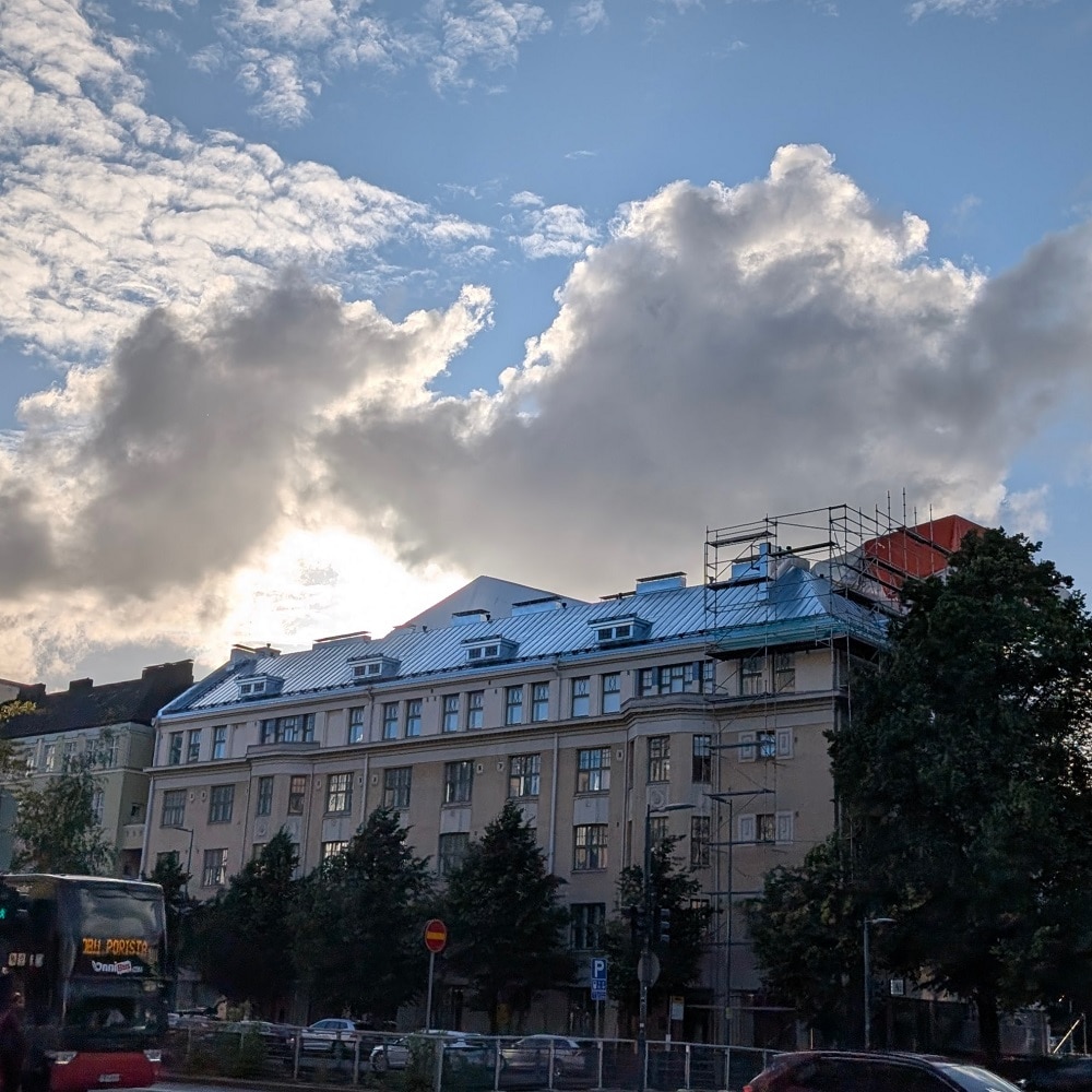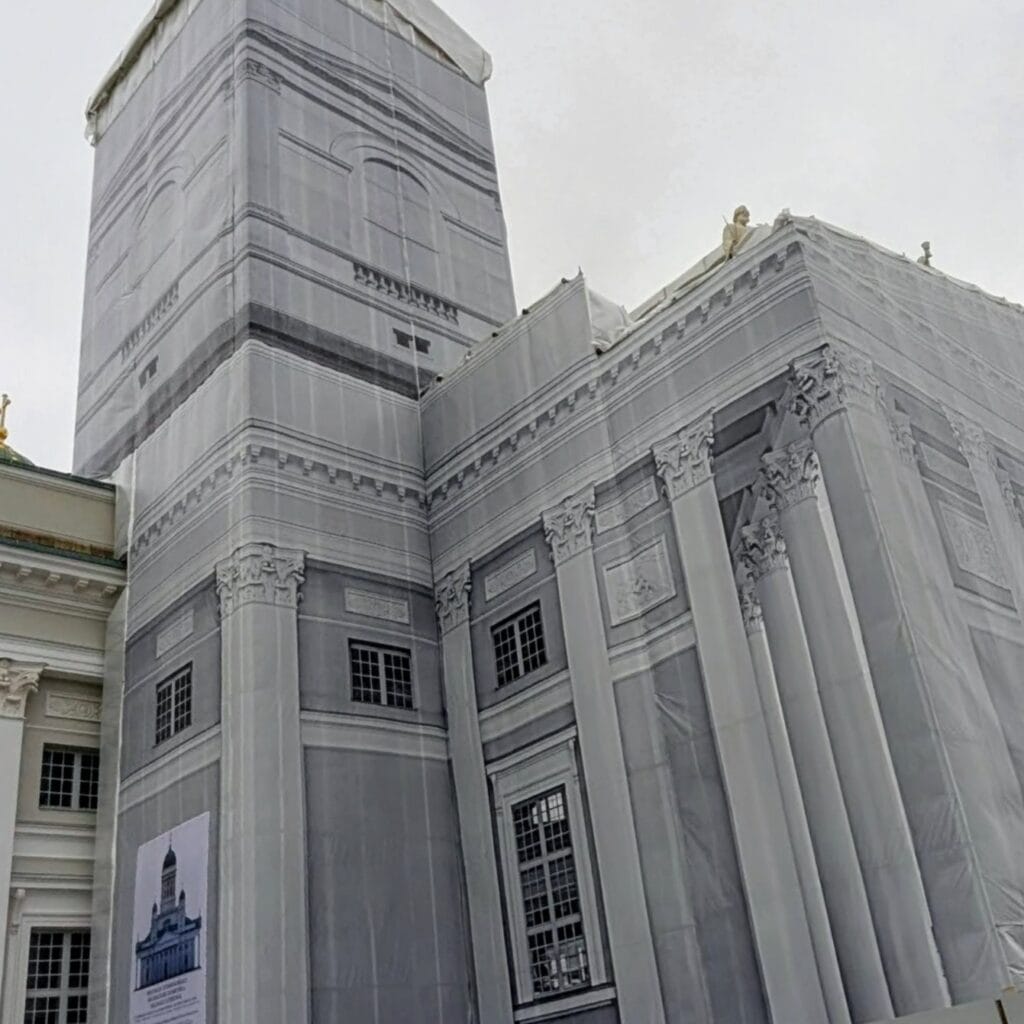 ヘルシンキ大聖堂は修復中でした。シートでさえデザイン性アリです。
